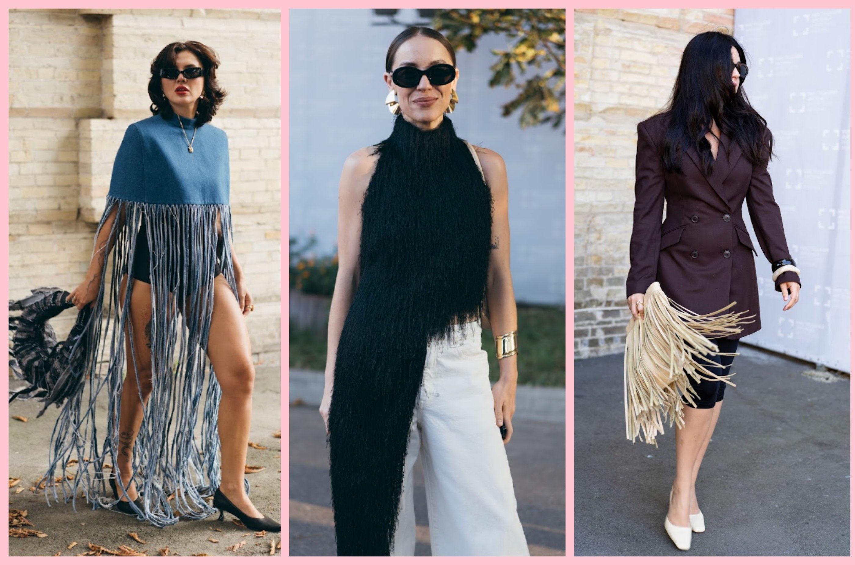 Тренд, который сложнее всего сфотографировать и проще всего запомнить. Бахрома появилась на сумках, кейпах, топах и даже в виде украшений. Она реагирует на каждый шаг и каждое дыхание ветра, придавая одежде подвижности и легкости. В стритстайле торочки становятся маленьким личным перформансом — все взгляды точно приковываются к этой динамике движения.