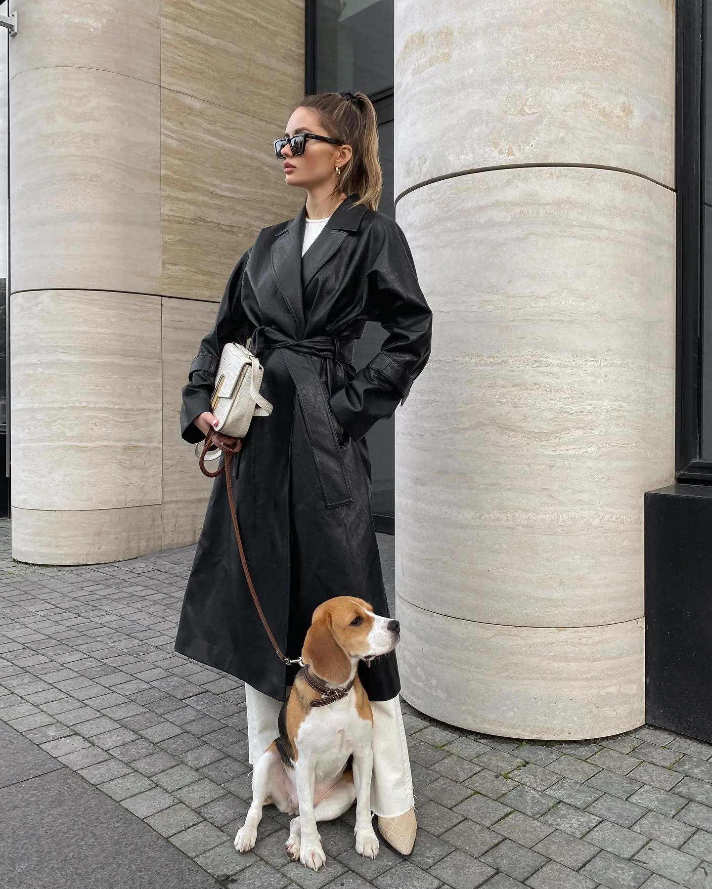 Когда-то его комбинировали только с женственными платьями и каблуками, но современная мода позволяет экспериментировать. Плащ из кожи прекрасно сочетается с и с джинсами, и с трикотажем, и с более классическими костюмами, создавая интересные повседневные образы.