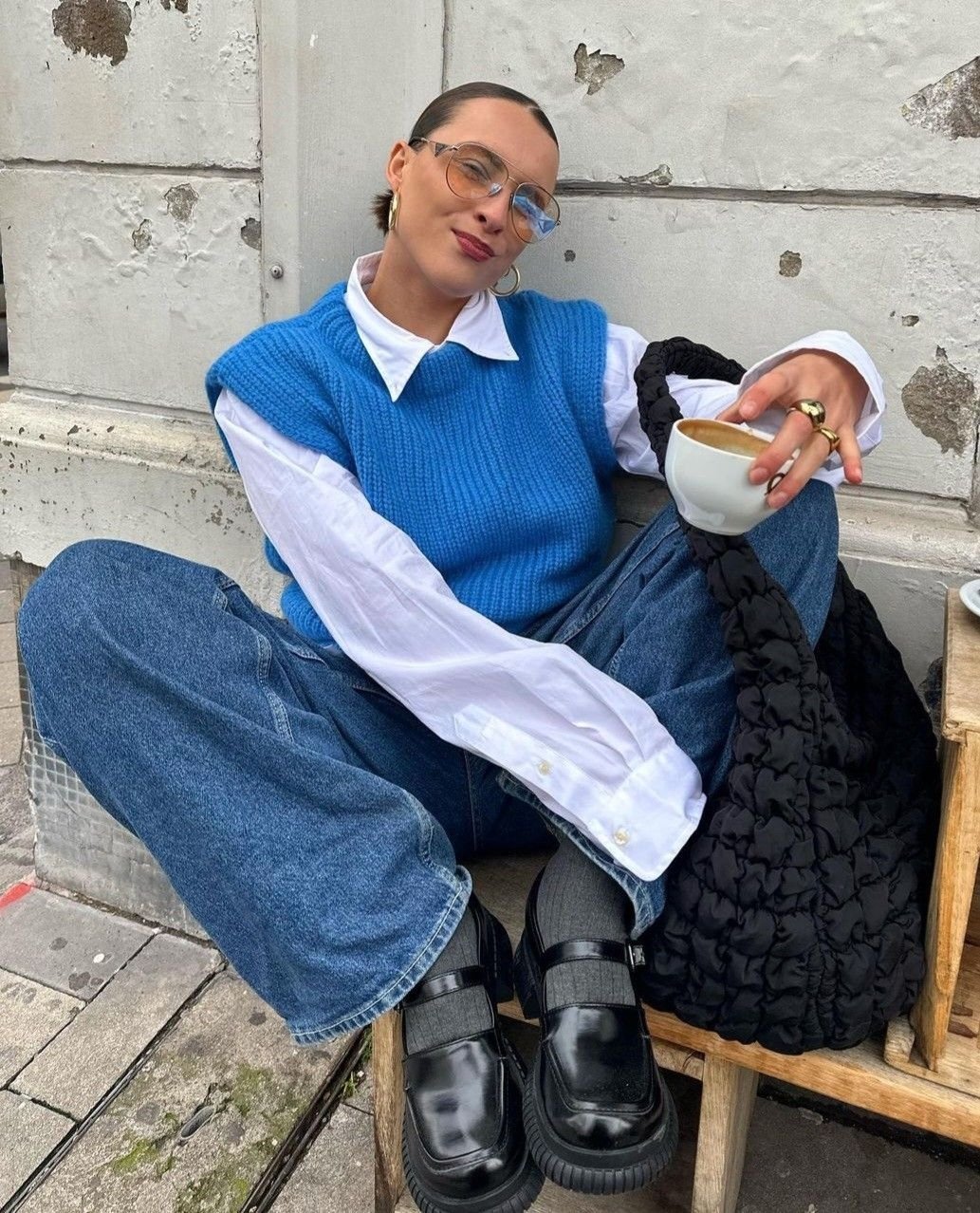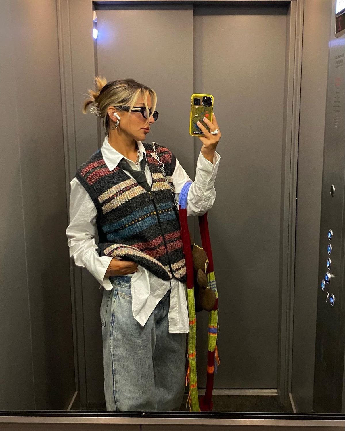 Корни эта тенденция берет из стиля "эклектичный дедушка". Его суть в сочетании старомодных элементов с современной иронией. Клетчатые рубашки, вельветовые штаны, объемные кардиганы, лоферы и ретро-кроссовки создают атмосферу беззаботного комфорта. Вязаный жилет здесь — ключевой элемент. Она должна быть немного расслаблена, с нотками ностальгии, но всегда стильно интегрирована в современный гардероб.