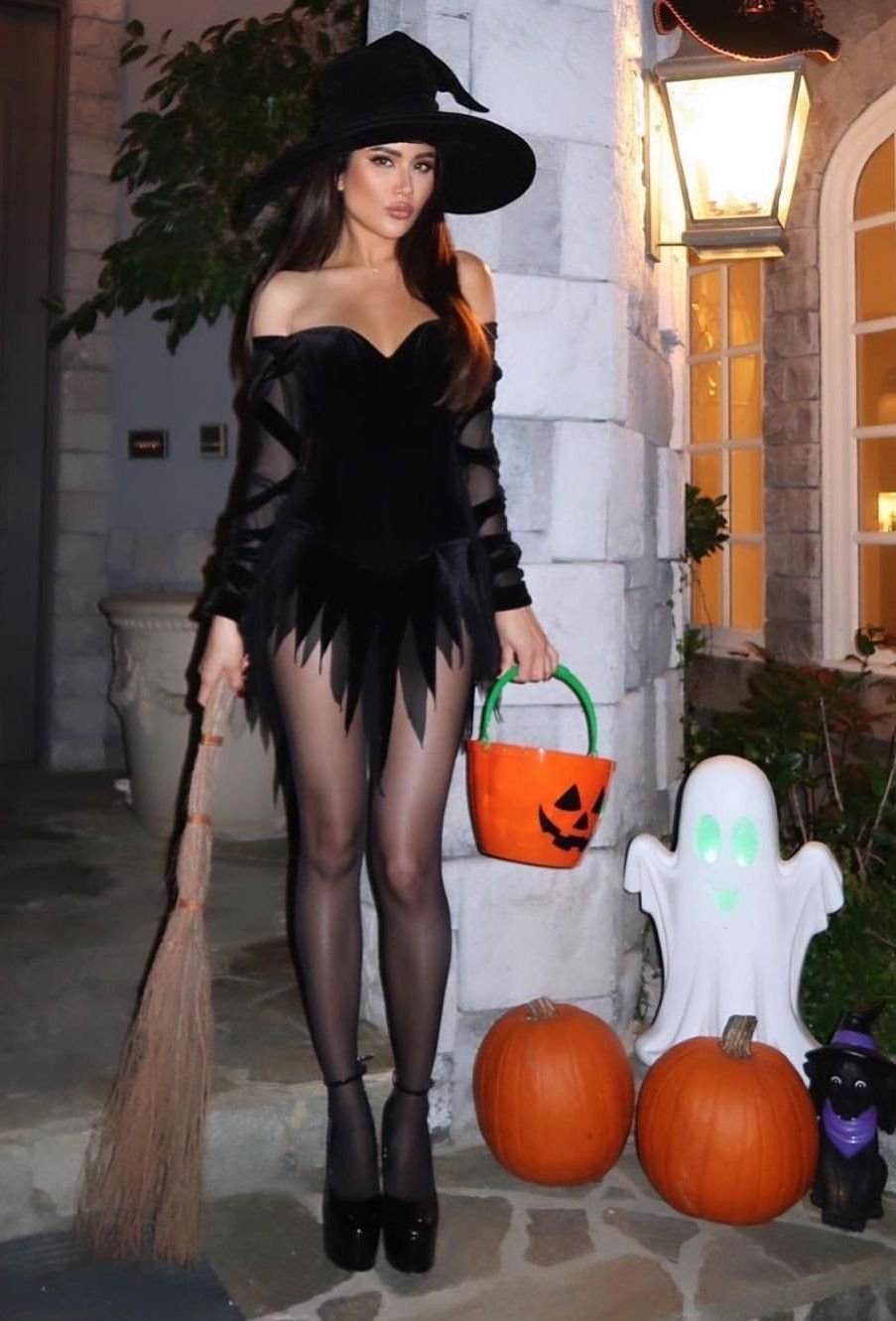 Образ загадочной ведьмы можно создать через несколько минут. Вам понадобится любое черное платье, чулки и перчатки — опционально, а еще шляпа, которую точно не трудно найти в сегодняшних реалиях. Для полноты эффекта можете прихватить с собой на праздник метлу!