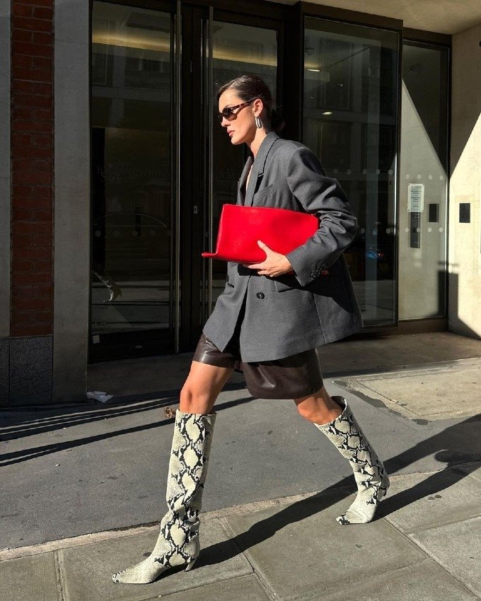 Змеиный, тигровый, леопардовый или крокодиловый рисунок — смелое решение для тех, кто не боится акцентов. Такие сапоги обычно имеют каблуки и придают образу характера.