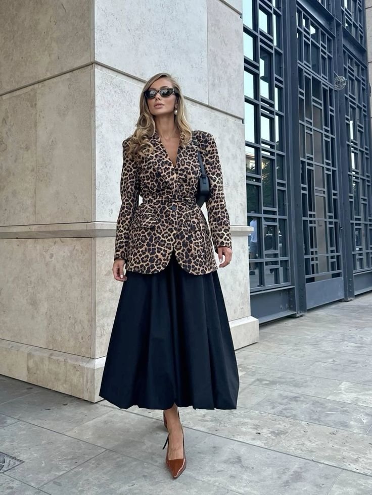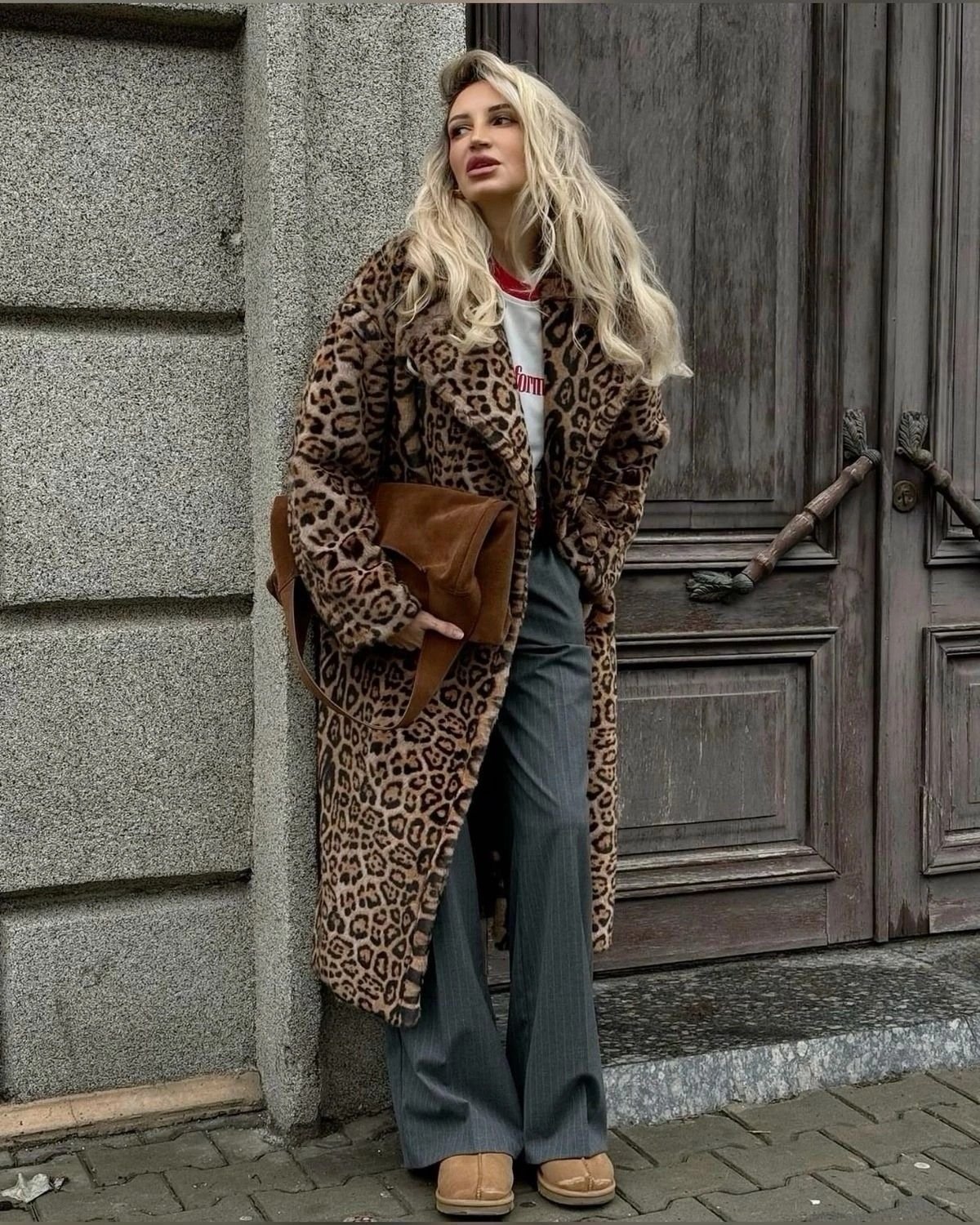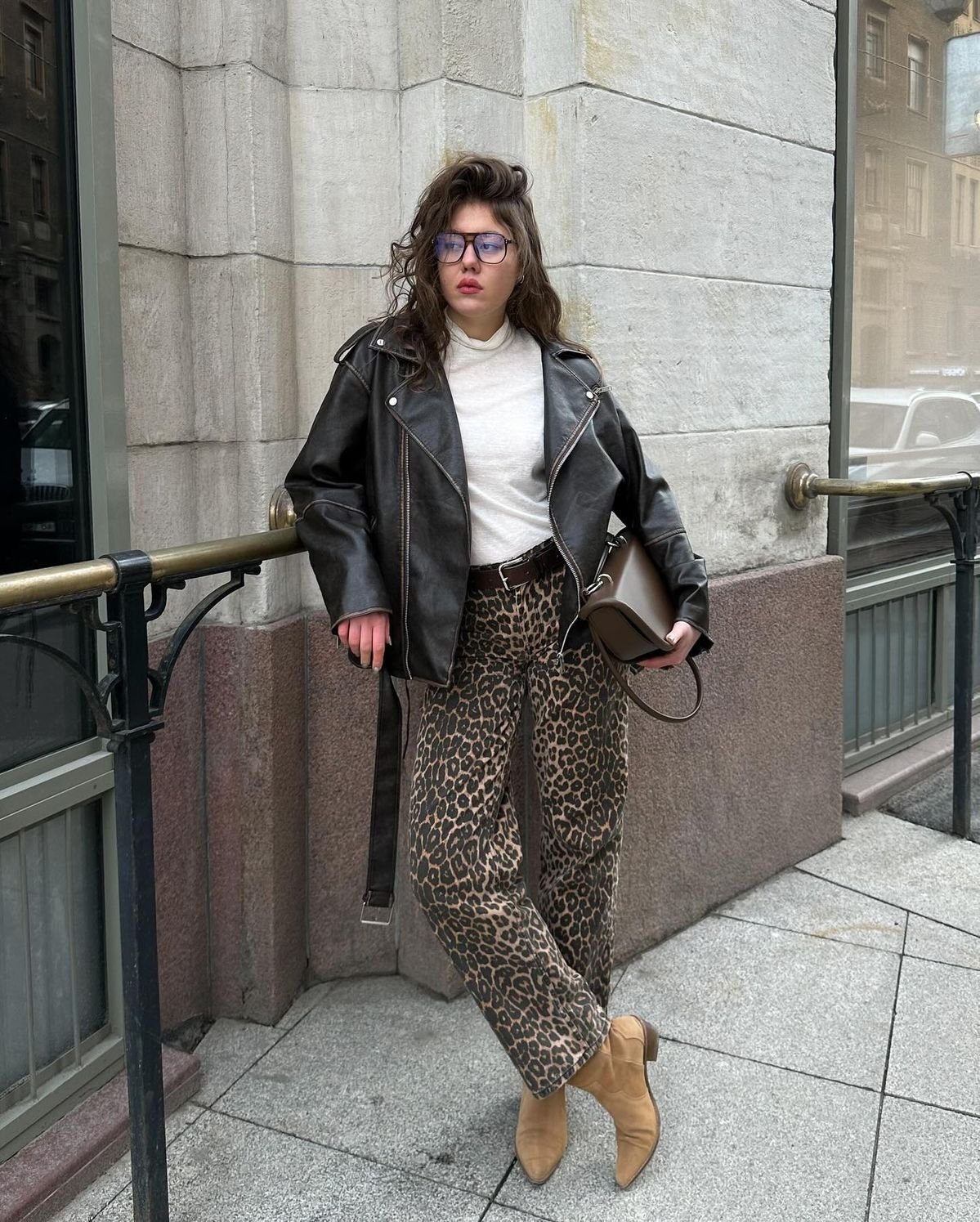 Чтобы добавить современности, сочетайте леопардовую одежду с фактурными вещами: объемным свитером, кожаной курткой или джинсами. Такие контрасты создают динамичный и модный образ.