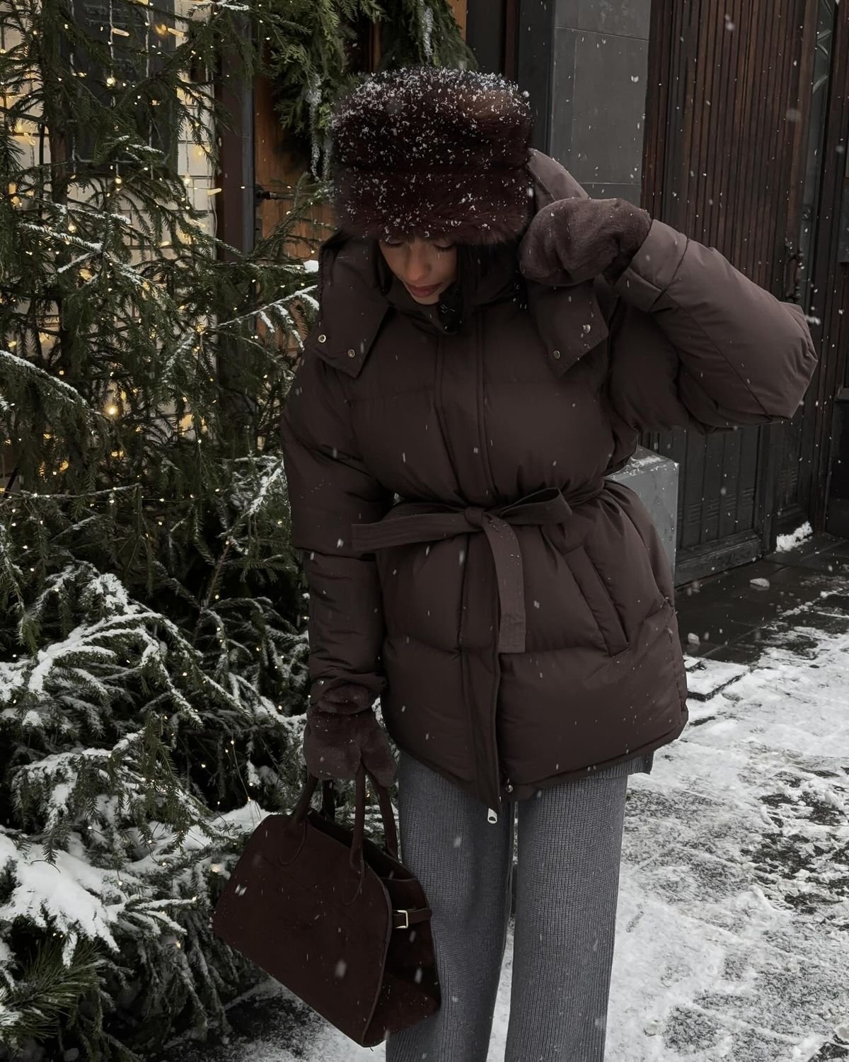 Пуховики женские с поясом в тренде. Фото: соцсети