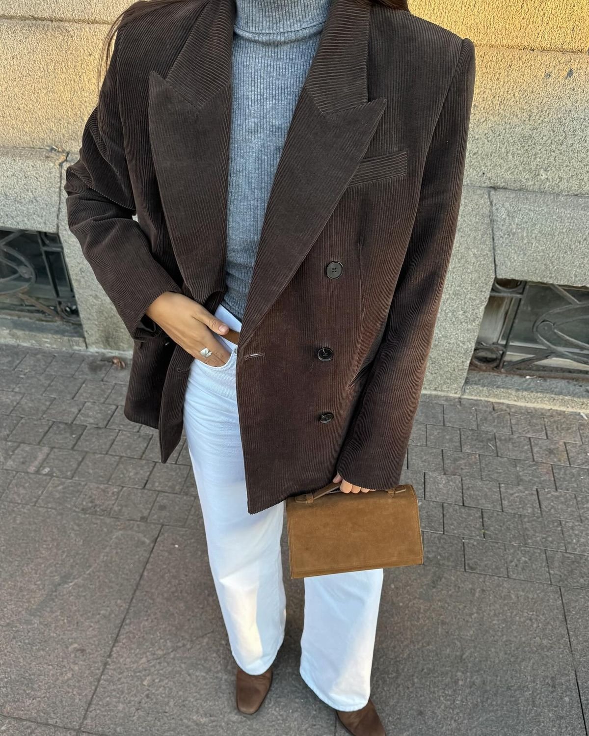 Еще один способ добавить вельвет к своим осенне-зимним образам — попробовать вельветовые жакеты или куртки. Советуем выбирать модели в модных цветах сезона, чтобы сделать из них акцентные элементы образа.