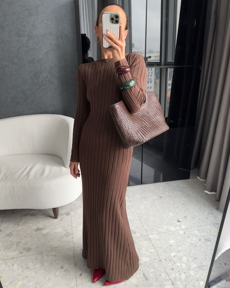 Зима — не повод забывать о платьях. Выбирайте уютные вязаные или трикотажные варианты, которые будут выглядеть женственно и помогут не замерзнуть даже в морозную погоду. Совмещать их можно с высокими сапогами и длинным пальто.