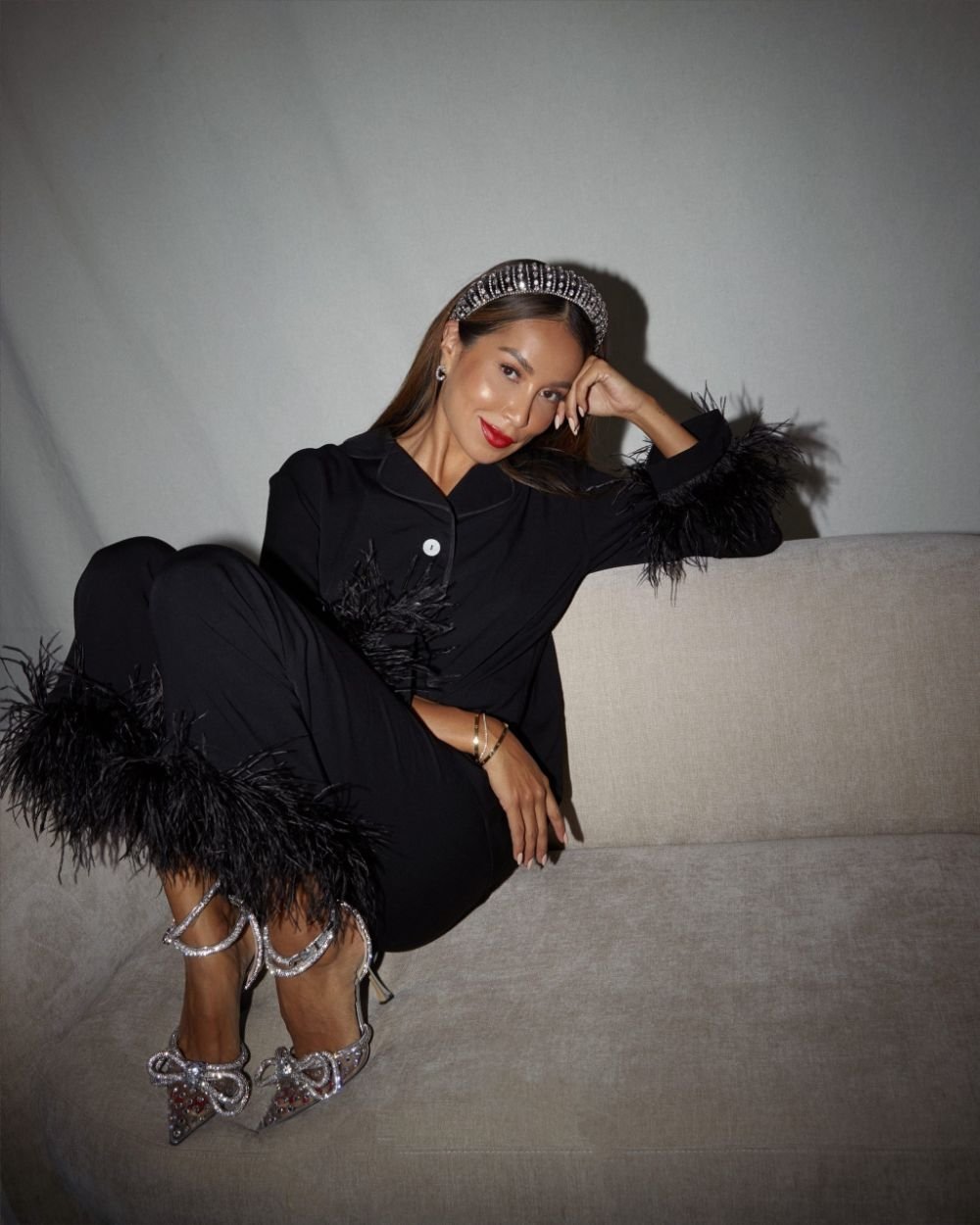 Если вы планируете одеть пижаму, советуем не останавливаться на банальных идеях в клеточку или с рождественским декором. Лучше сделайте ставку на гламур. Выберите бархатную пижаму с блестками или перьями. В таком наряде вы будете выглядеть потрясающим.