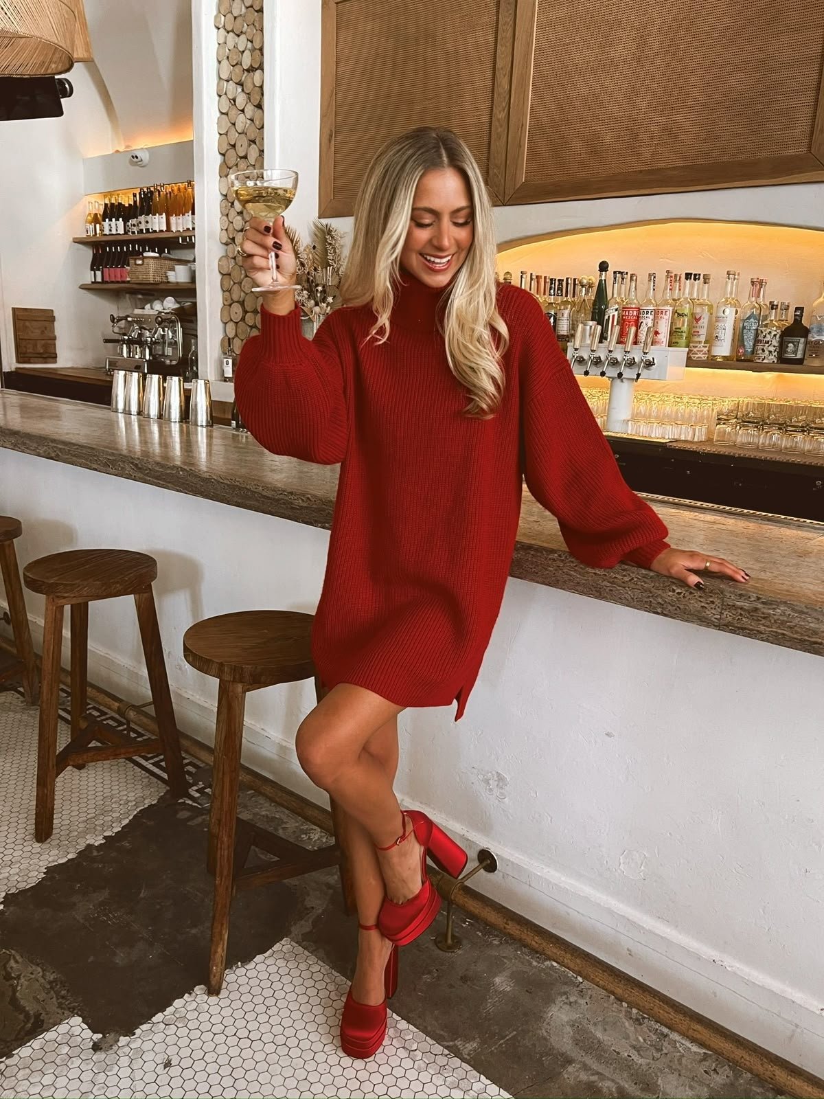 Это самый простой способ выглядеть стильно без лишних усилий. Выбирайте вязаное платье в виде удлиненного свитера и комбинируйте его с праздничными чулками или каблуками, если хочется еще больше женственности и гламура.