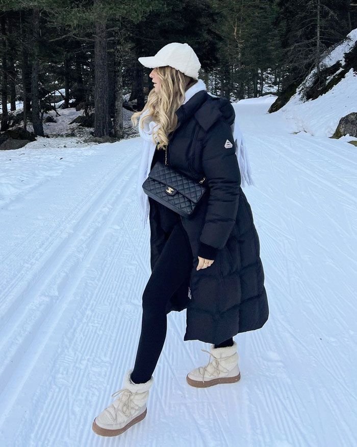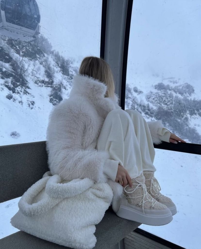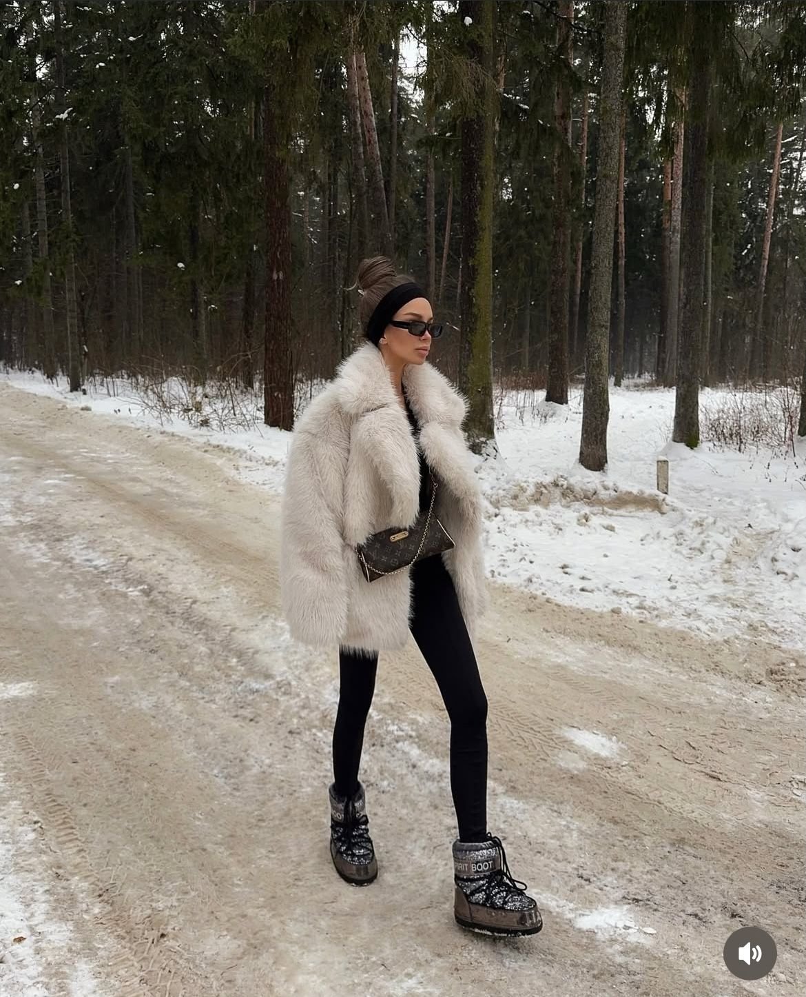 Такая обувь гармонично смотрится и в городских лугах: с экошубами, утепленными трикотажными костюмами, длинными шерстяными платьями или классическими пальто. В подборке ниже вы найдете стильные примеры, наглядно показывающие, как носить сноубутсы зимой и выглядеть стильно без ущерба для комфорта.