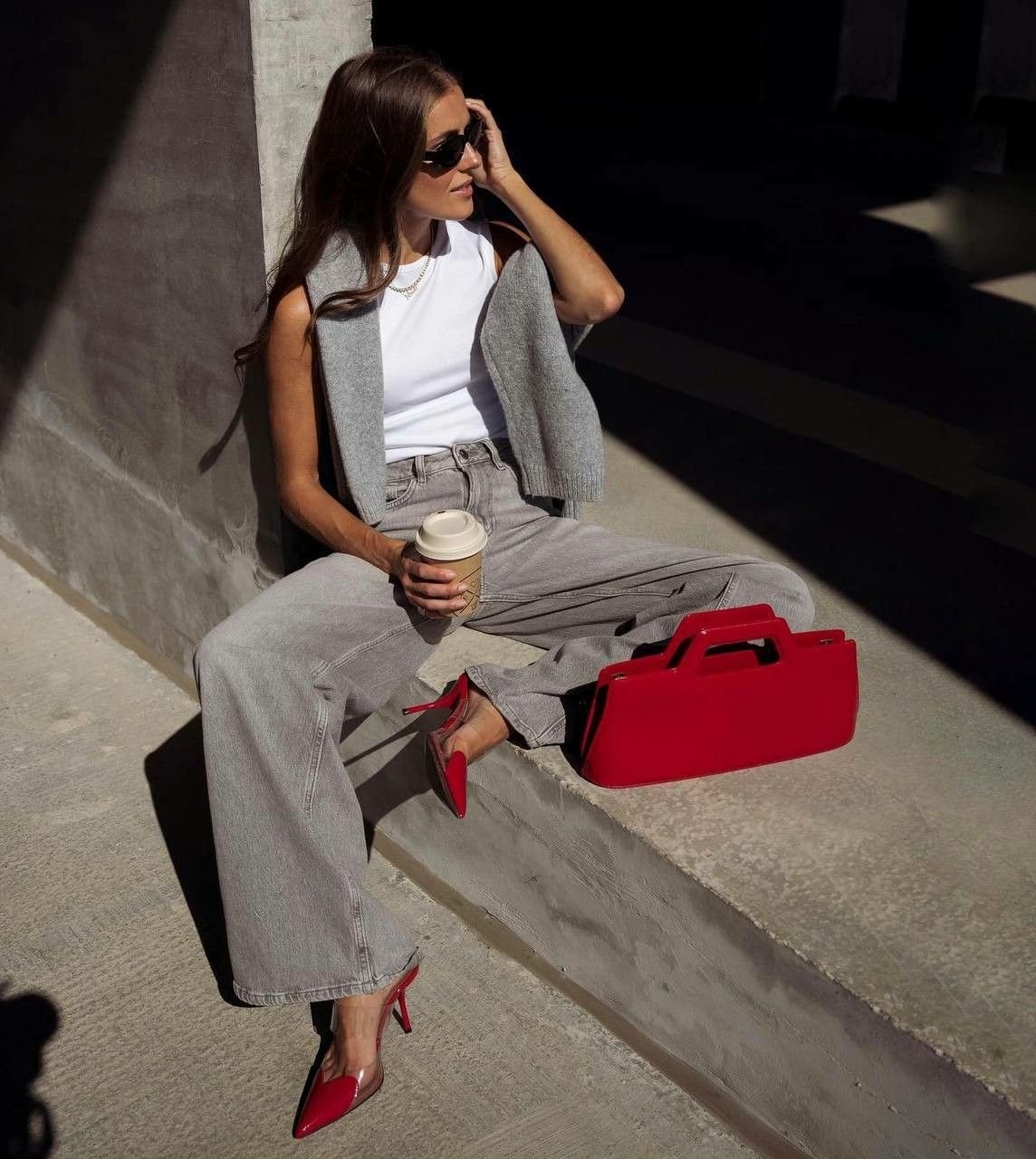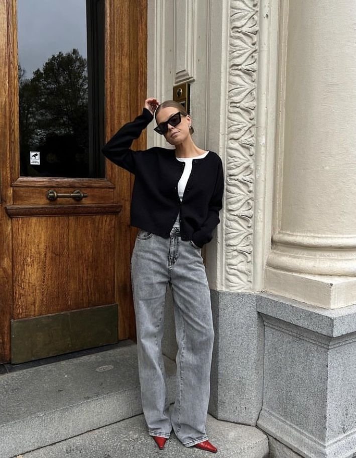 Главный секрет, почему серые джинсы в моде — баланс. Этот цвет смотрится нейтрально, но дорого. Именно он помогает достичь эффекта так называемой "тихой роскоши".