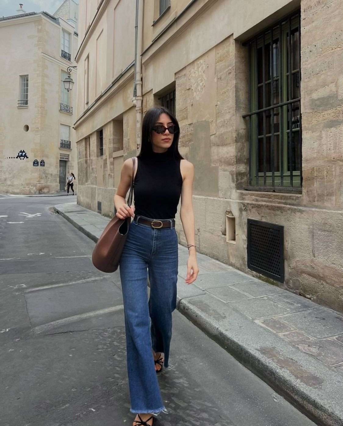 Лучше всего гольф без рукавов смотрится вместе с классическими брюками прямого кроя — роскошное и простое сочетание. Также его можно носить с джинсами, создавая нейтральные повседневные образы, или же стилизовать вместе с юбками в длине макси — это выглядит элегантнее и изысканнее.
