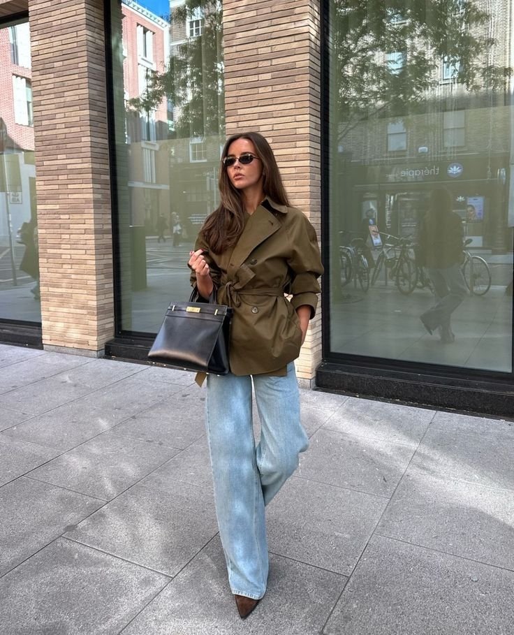 Классические длинные тренчи остаются вне конкуренции, но этой весной короткие модели уверенно выходят на первый план. Они смотрятся легко, актуально и придают образу динамики. Такой тренч без проблем комбинируется как с повседневными джинсами, так и с более изысканными лугами.