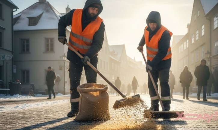 Хитрость опытных дворников: это средство работает лучше песка и не разносит грязь в дом