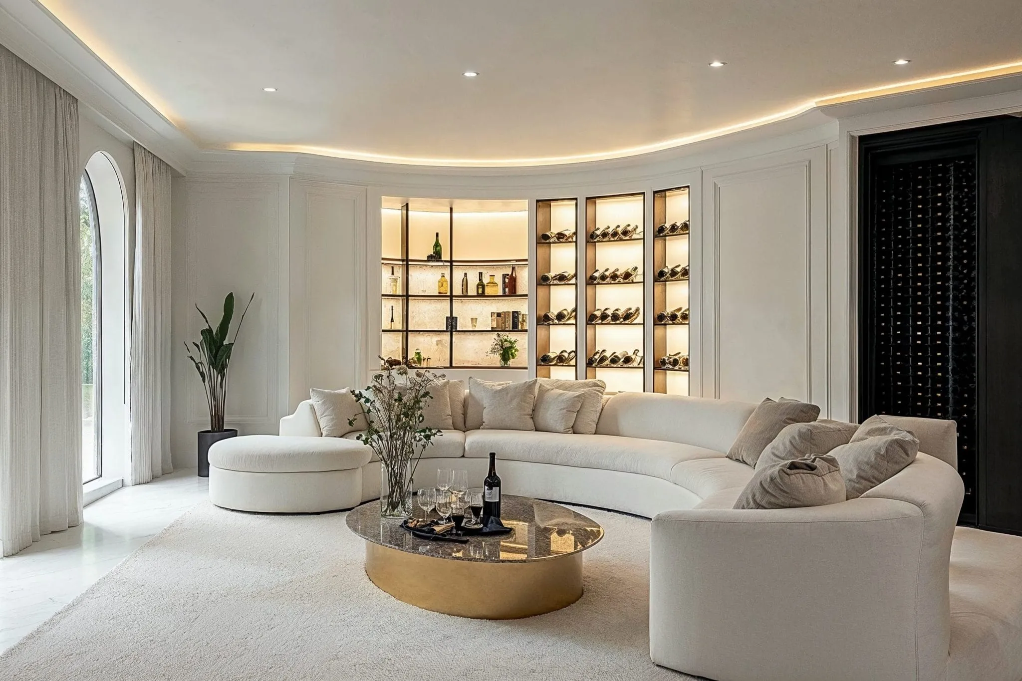 В этом году в дизайне дома советуют использовать плавные изогнутые линии не только для мебели, но и для различных деталей, акцентов, ниш, арок, светильников и декора.