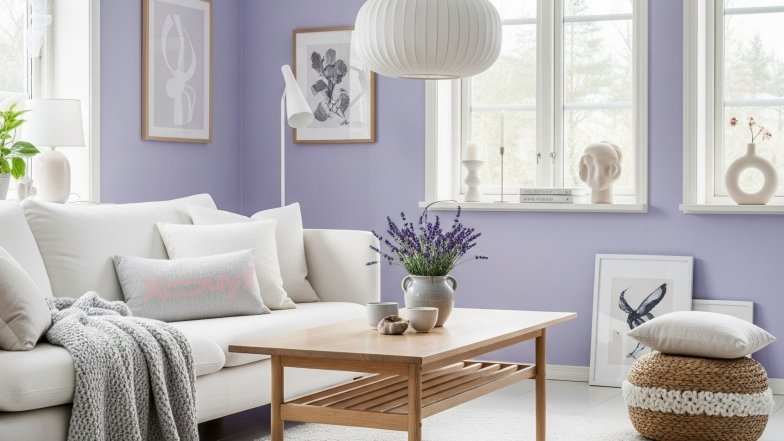 Лавандовый цвет в оформлении гостиной самый модный в 2025 году