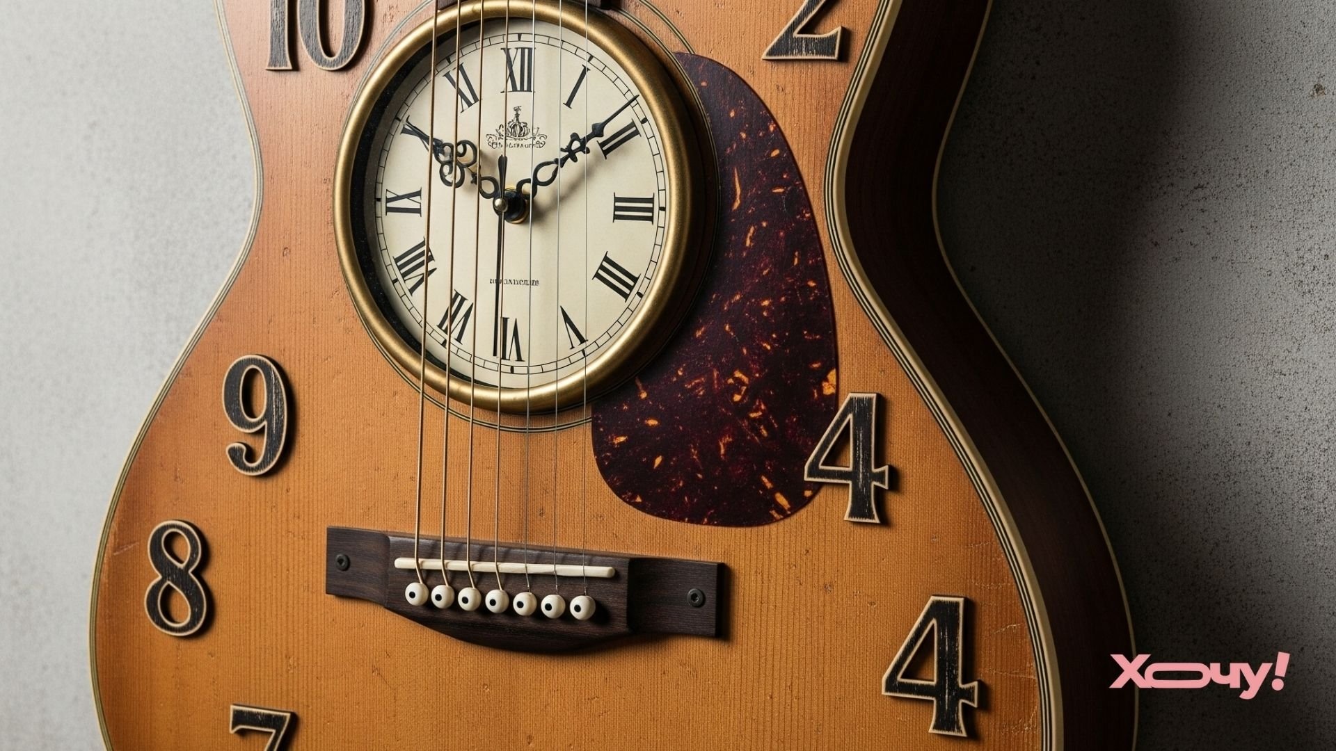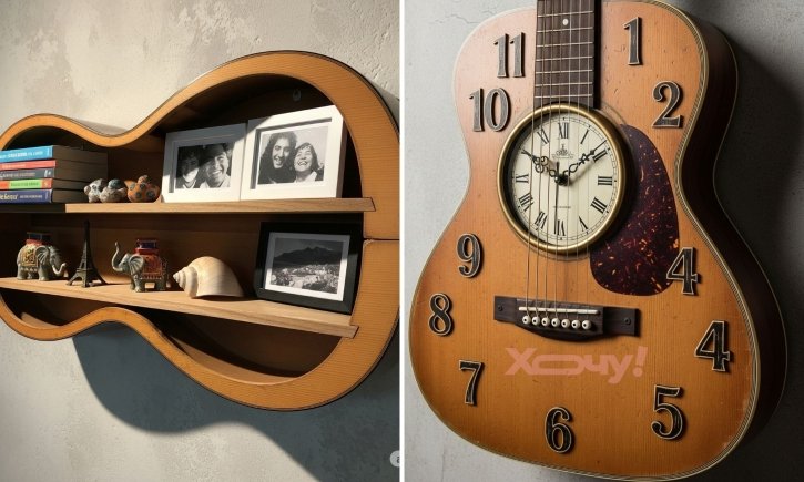 Старую гитару можно превратить в уникальные настенные часы. Снимите струны и внутренние механизмы. Затем прикрепите часовой механизм в центральном отверстии. Цифры можно нанести краской, наклеить или вырезать из дерева или металла. Такие оригинальные часы станут ярким акцентом в любой комнате, особенно в гостиной, музыкальной студии или творческой мастерской.