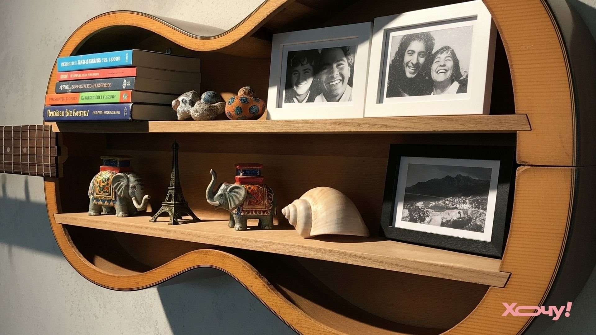 Один из самых популярных и эффектных способов дать новую жизнь старой акустической гитаре – превратить ее в стильную полку. Для этого нужно разрезать гитару пополам вдоль или аккуратно снять переднюю противень. Внутрь можно установить несколько маленьких древесных полочек. В нем можно хранить книги, сувениры, фотографии или даже коллекцию виниловых пластинок.