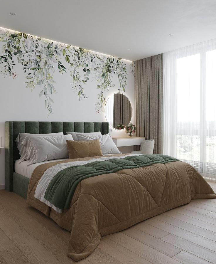 В тренде — мягкие цвета, дерево, необычное освещение и декор, который придаст изюминку интерьеру. В такой спальне можно по-настоящему расслабиться, зарядиться энергией и вдохновением. А еще в подобной комнате модно делать креативные фотосессии и снимать сторис.