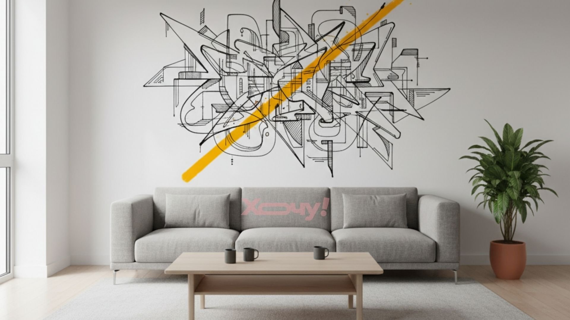 • Минималистичный граффити. Тонкие линии, абстракция, черно-белые цвета или один яркий акцент. Идеально для скандинавского стиля или минимализма.