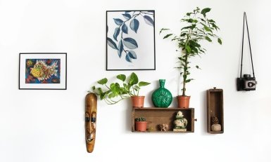 Вместо мелких постеров – сделайте акцент на большой картине или галерее из нескольких работ. Не обязательно покупать дорогие холсты: на блошиных рынках и в секонд-хендах можно найти уникальные вещи. Если пространство небольшое, создайте галерею из фото, постеров или даже зеркал – такой подход сделает комнату индивидуальной.