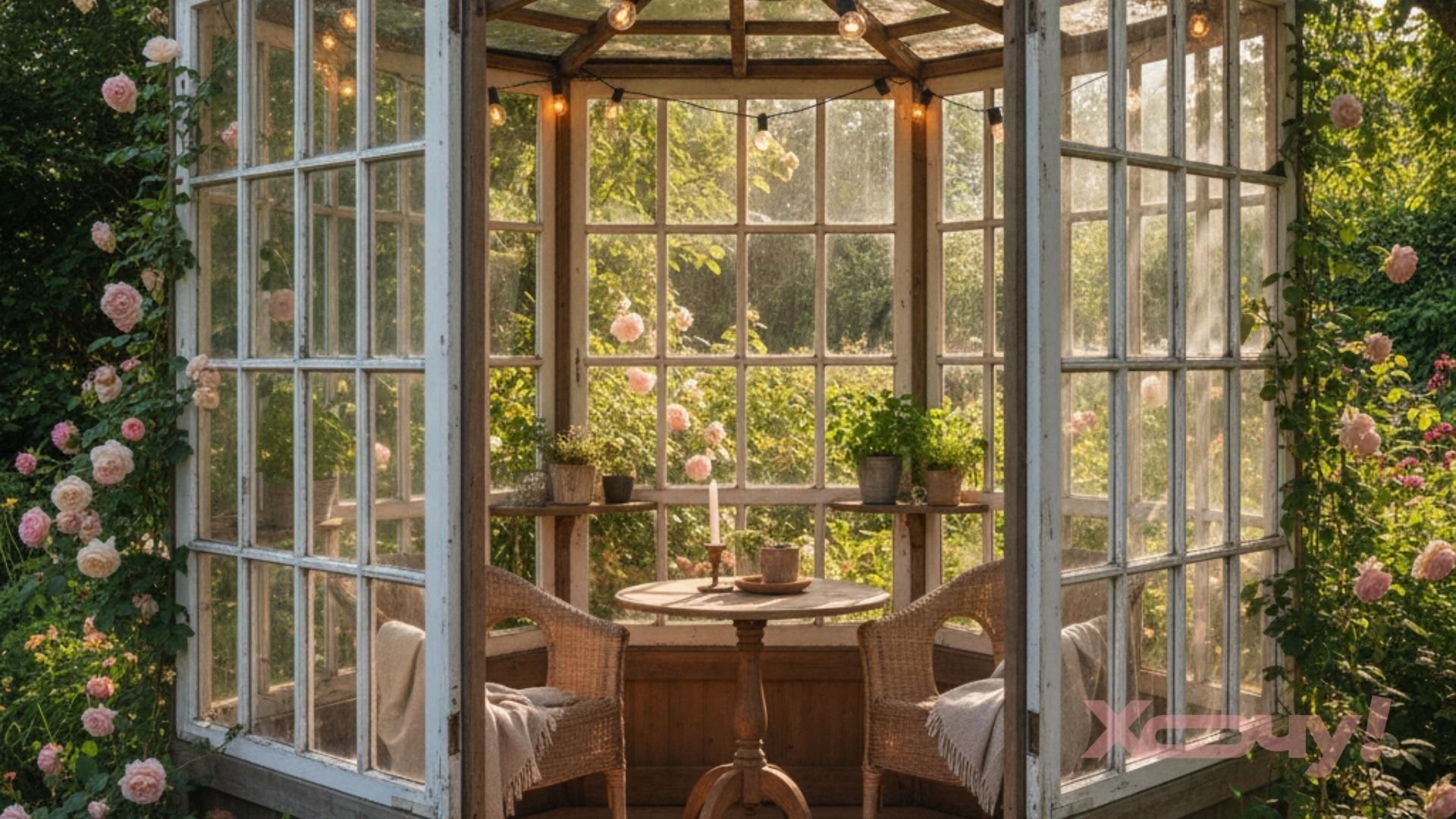 Несколько оконных рам нужно соединить между собой, чтобы сформировать закрытые стены для беседки или летней кухни. Беседка будет защищена от ветра и дождя, поэтому комфортно будет даже в прохладную погоду.