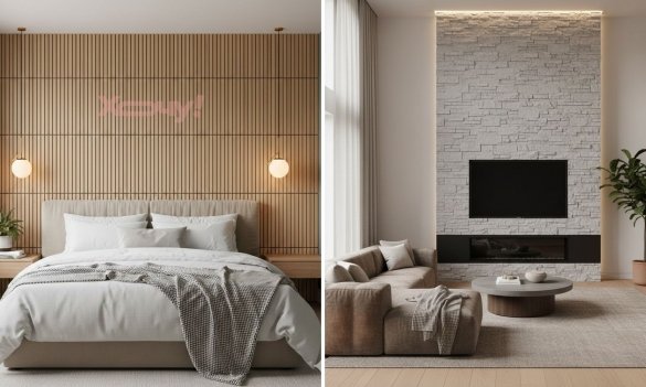 Весьма популярен вариант отделки, который часто предпочитали особенно в спальне. Даже появилась плитка, имитирующая рельсы. Если планируете много лет наслаждаться ремонтом, то лучше избегать таких решений.
