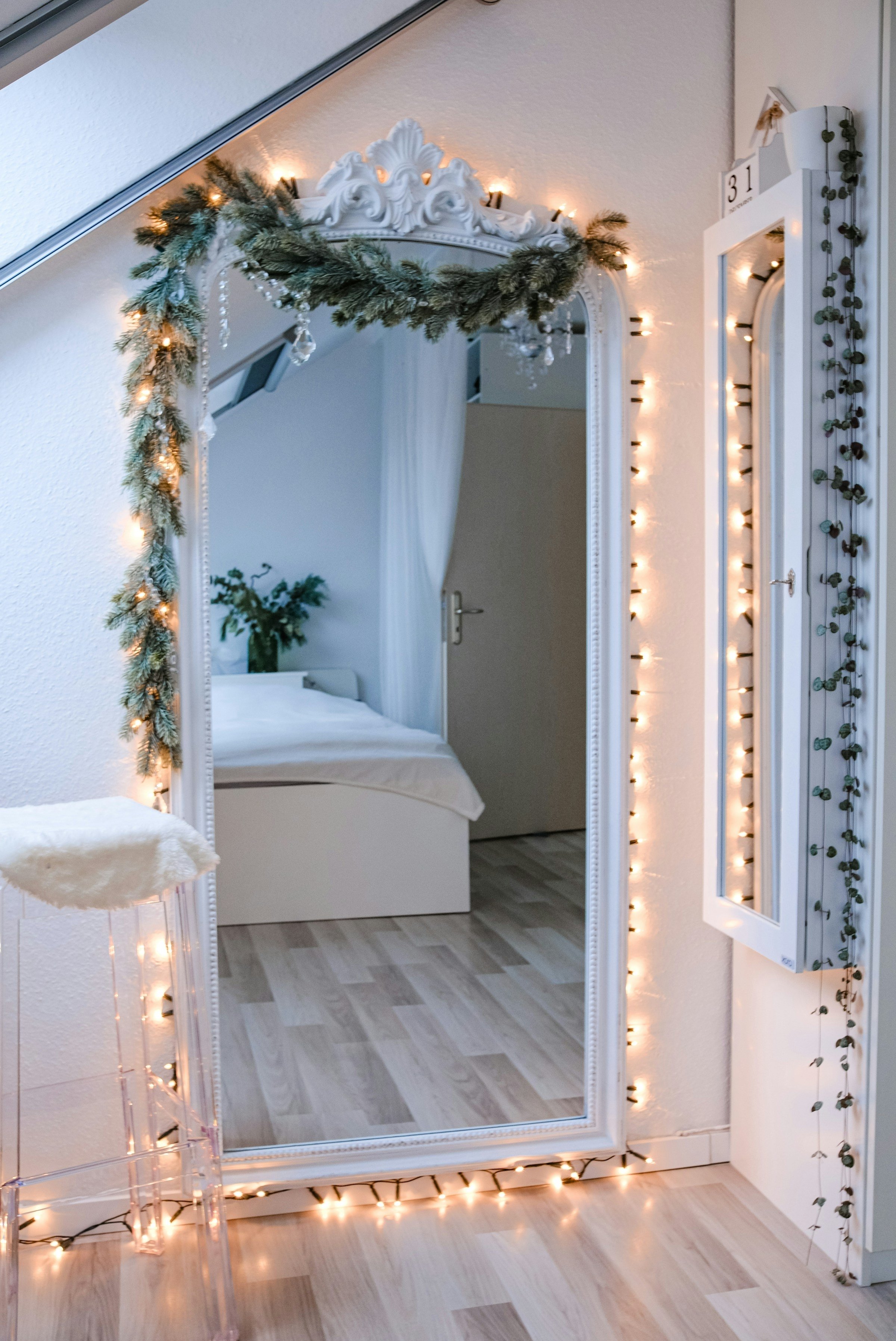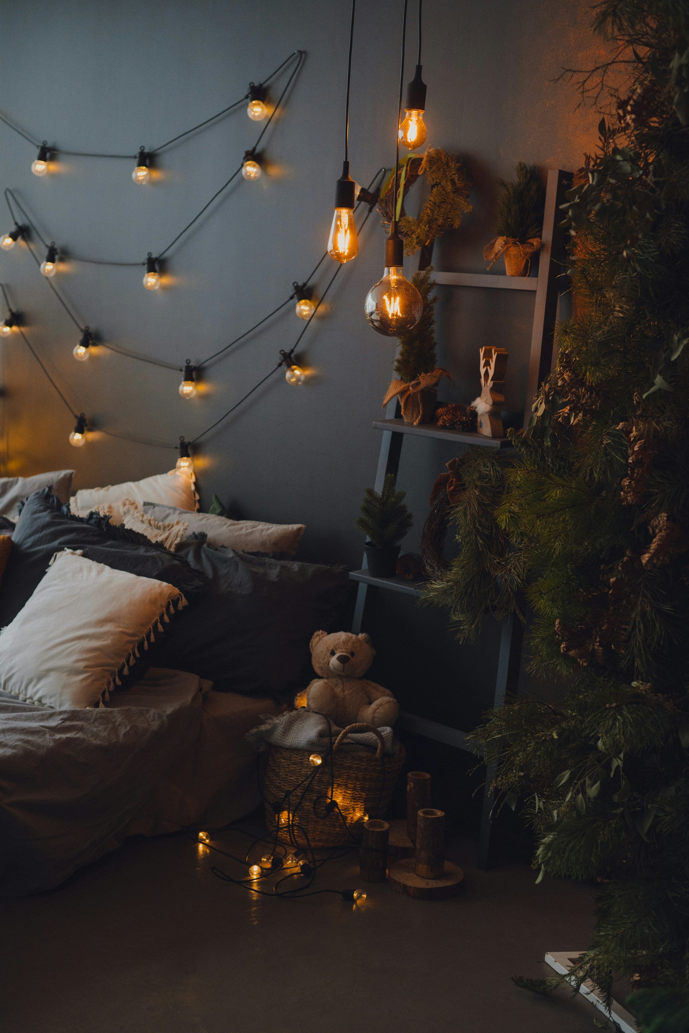 Разместить их на мебели, окнах, стене или даже в стеклянной банке с веточками хвои – простой прием, который сразу делает пространство волшебным. Аккуратные теплые лампочки превращают любую комнату в праздничную.