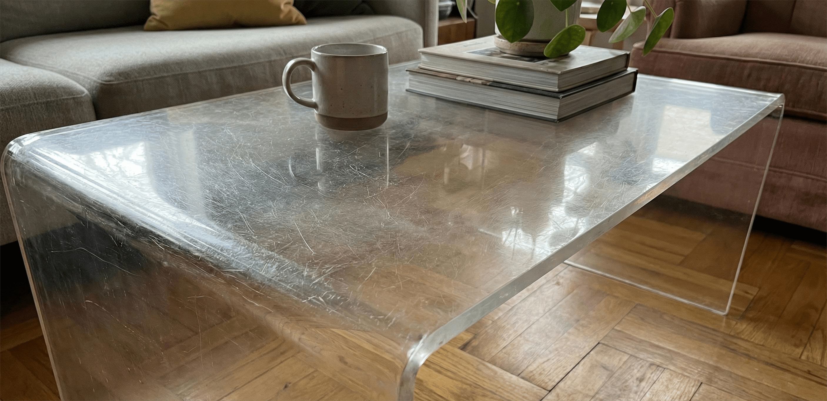 Акриловые столы, стулья или декор выглядят современно, но со временем покрытие быстро темнеет, мутнеет и покрывается царапинами. Дизайнер Мириам Сильвер Верга объясняет, что акрил невозможно отреставрировать, поэтому любые следы изношенности останутся навсегда. Даже небольшие дефекты на таком материале видны сразу, поэтому шансов вернуть вещи хороший вид практически нет.