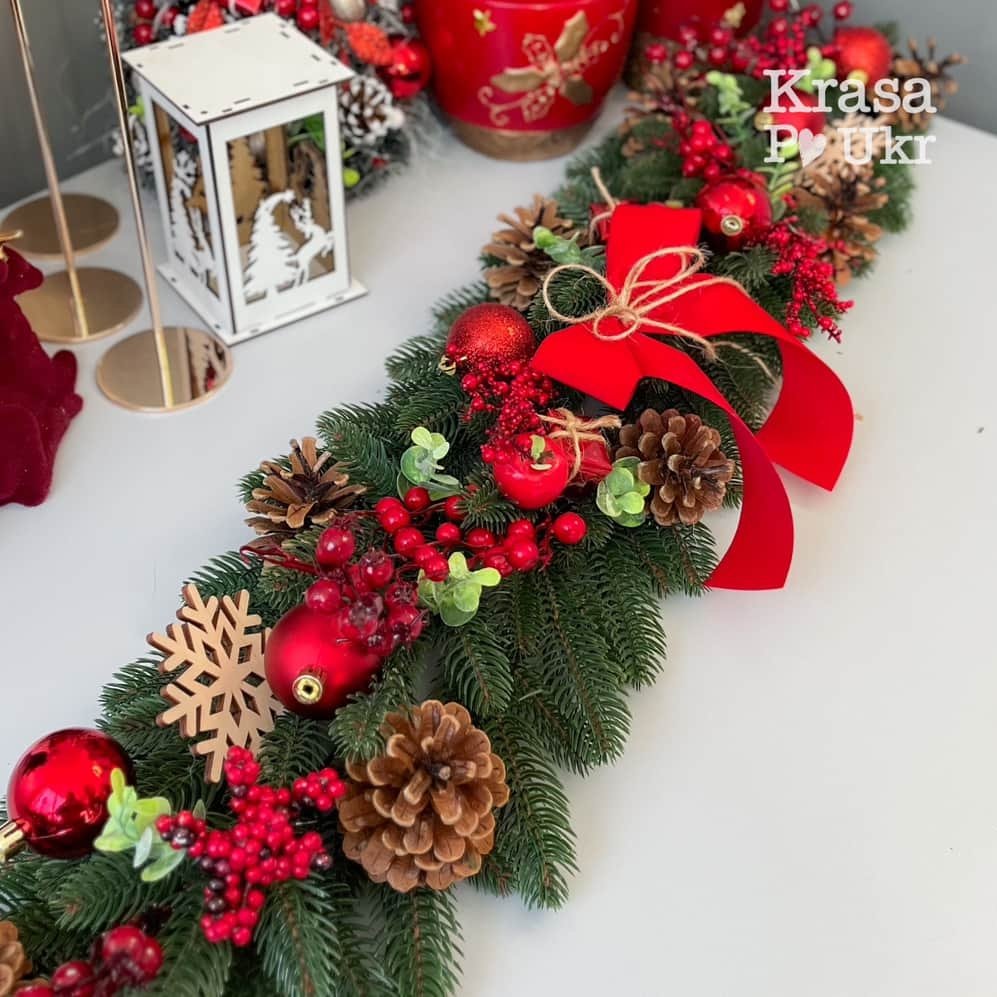 Искусственные гирлянды имитирующие елку уже не в моде. А особенно красные банты на них. Они просто не могут конкурировать с настоящим кедром, свежей сосной и красивой цветной лентой лесного зеленого или мокко.