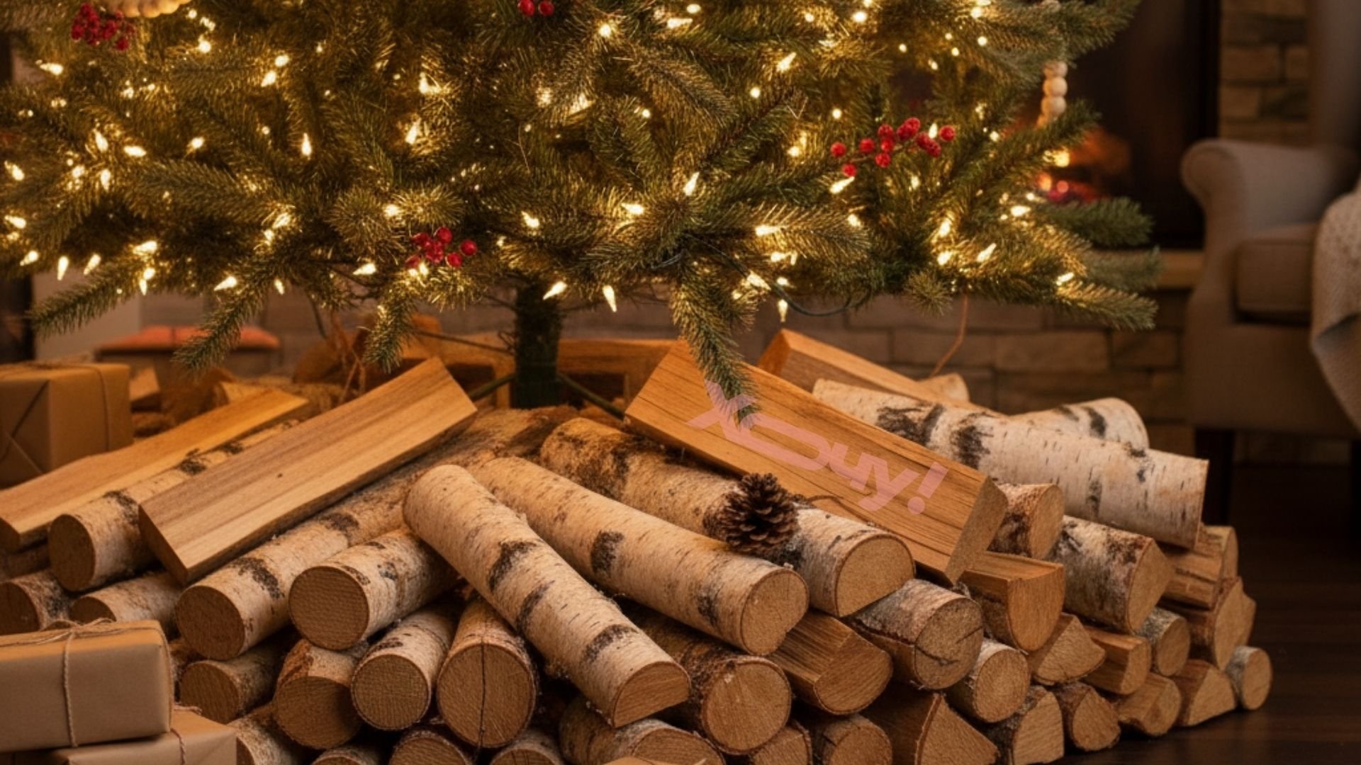 Сложите небольшую "стопку" настоящих березовых или сосновых поленьев вокруг подставки. Это придаст лесного аромата и вида загородного домика.