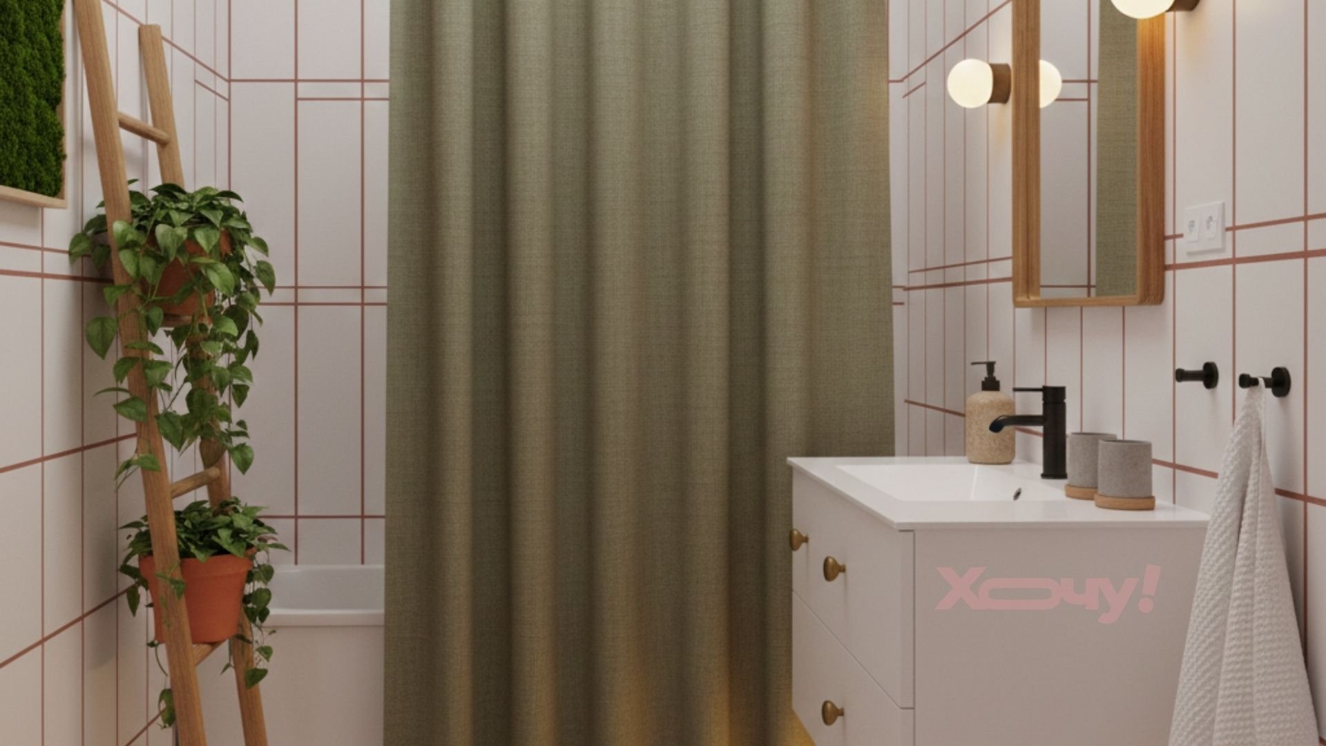 Короткие занавески больше не в моде. Самым стильным решением в 2026 году является максимальная вертикаль. Попытайтесь повесить карниз для шторы под сам потолок, а не над ванной. Купите две шторы (наружную текстильную и внутреннюю водонепроницаемую). Это визуально поднимет потолок и придаст уют.