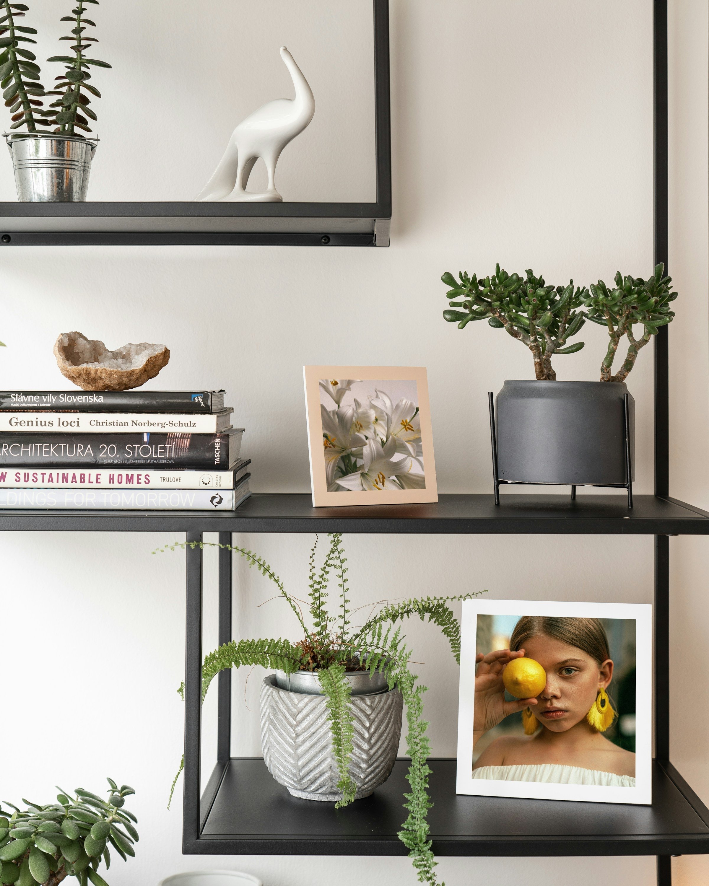 На полках и тумбах "правило троих" особенно заметно. Когда вы сочетаете предметы разной высоты и фактуры – например, книгу, декоративный объект и вазу – композиция выглядит завершенной и изящной. Один элемент может быть сдержанным, второй – текстурным, а третий – акцентным. В трио они не конкурируют между собой, а усиливают всеобщее впечатление.