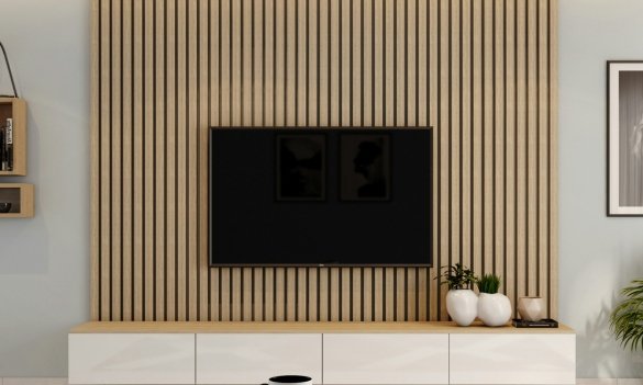 Это удобно для гостиных и спален, где хочется минимум визуального шума. Дополнительная подсветка вокруг экрана делает пространство более уютным и уменьшает нагрузку на глаза во время просмотра.