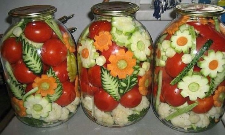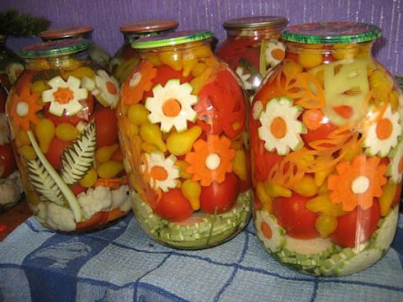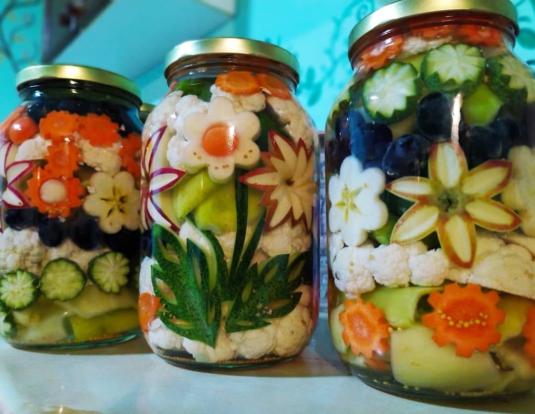 Предлагаем вам рассмотреть интересные идеи для украшения банки с консервацией. А также, как можно выложить овощи внутри, чтобы они напоминали настоящее произведение искусства, которое даже есть будет жалко.