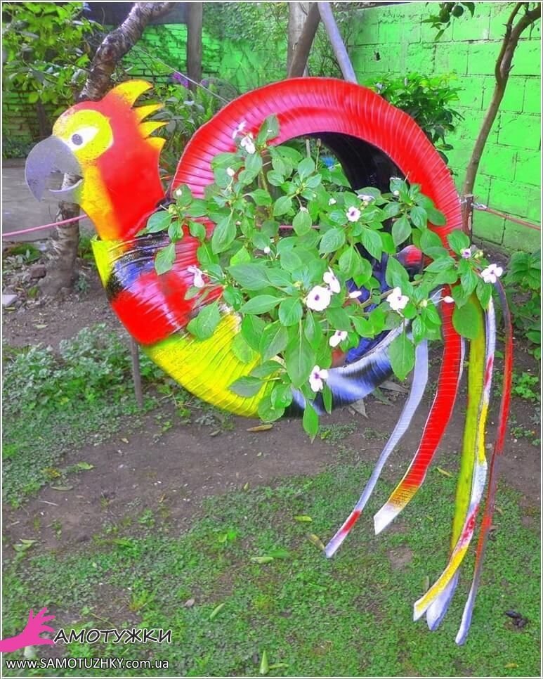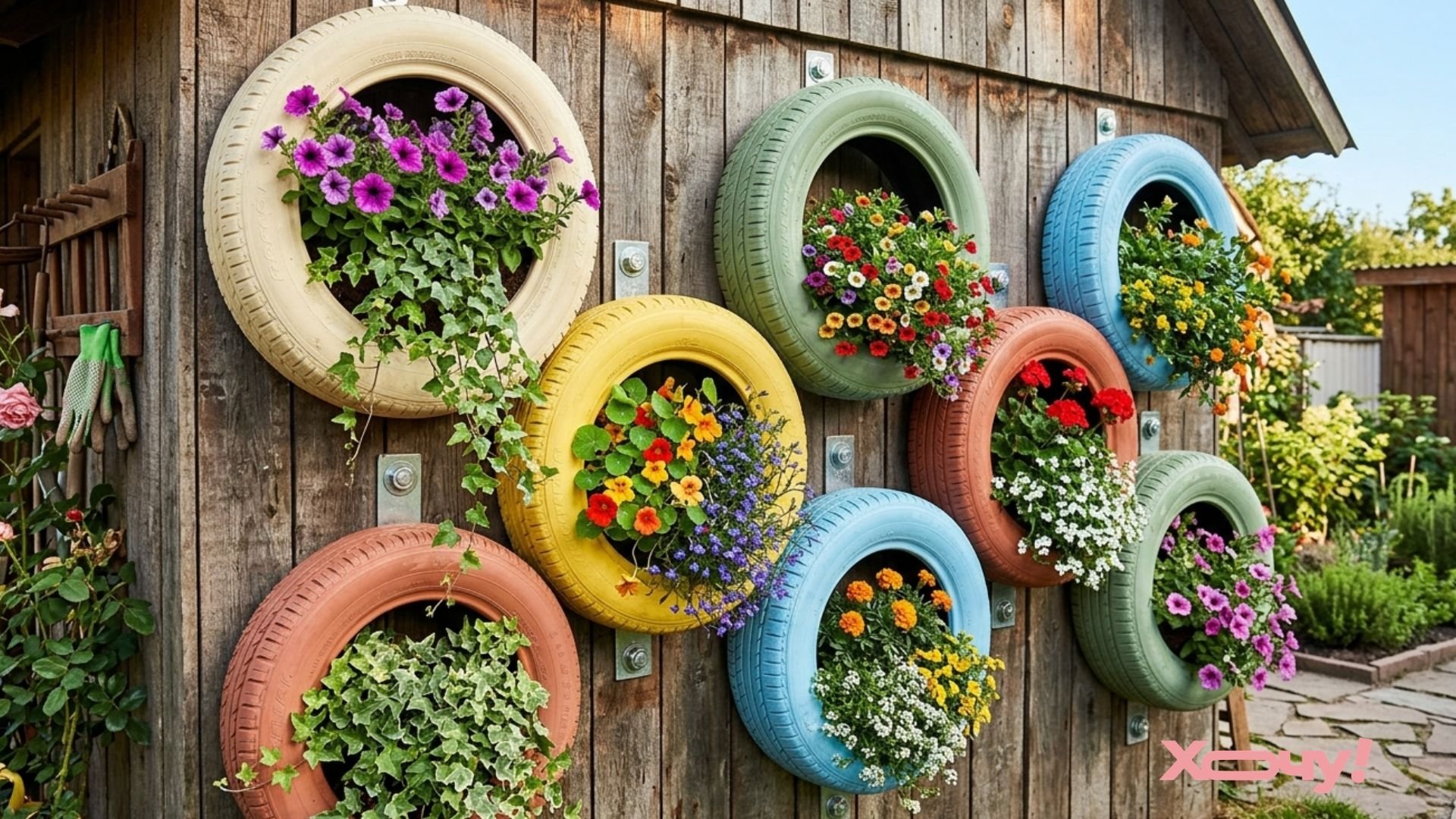 • Подвесное кашпо. Размещение шин на стенах, заборах или деревьях.