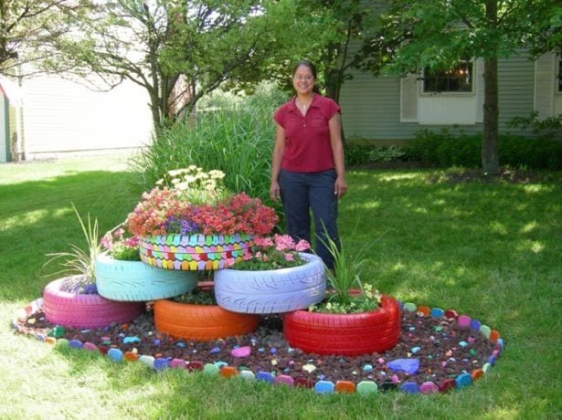 Когда на участке мало места, даже один метр может оказаться настоящим спасением, если использовать его правильно. Автомобильные шины, которые уже отжили свое , можно использовать для самых разнообразных вещей в хозяйстве. К примеру, они легко превращаются в шикарные клумбы с цветами.