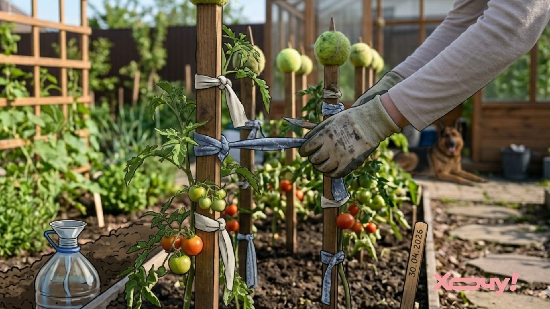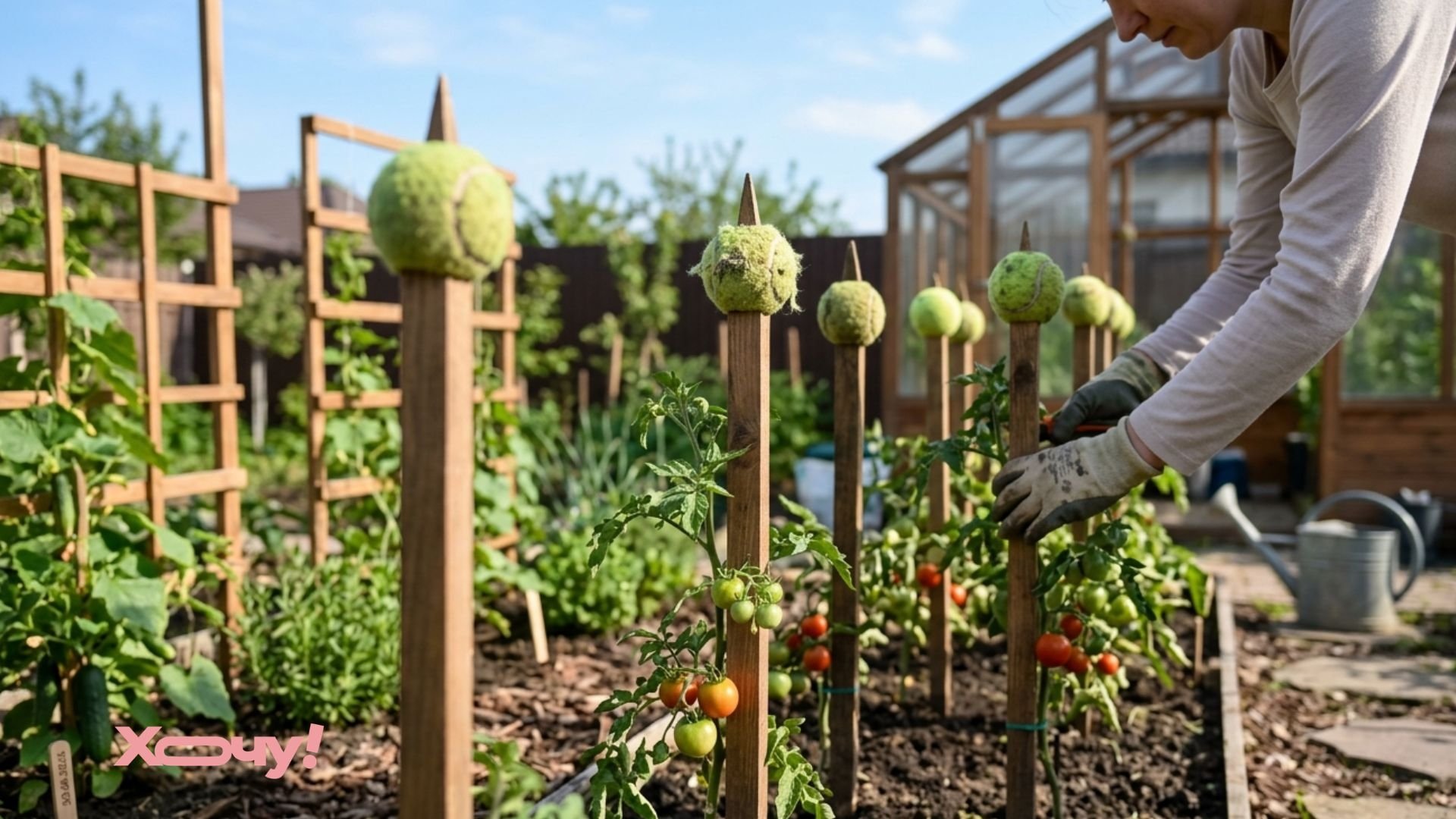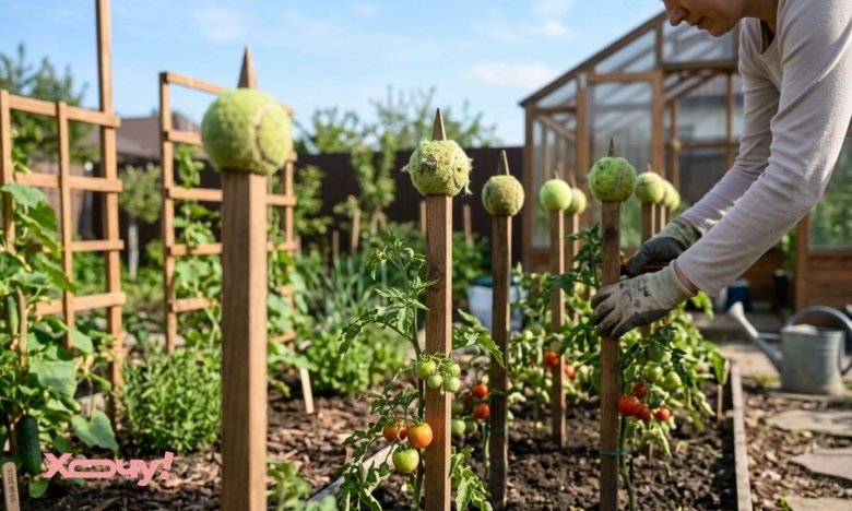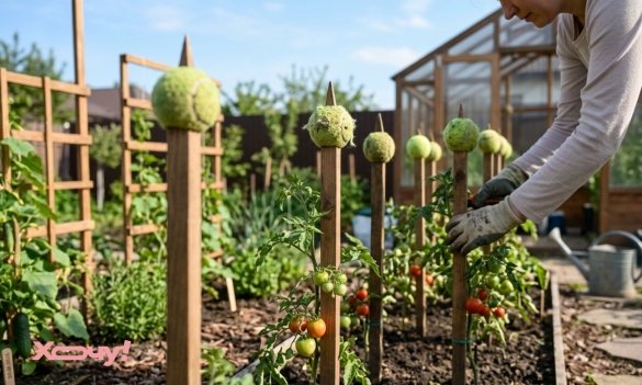 Если на вашем участке есть острые колья для подвязывания растений, наденьте на их концы старые теннисные мячики. Это убережет вас от случайных травм во время работы.