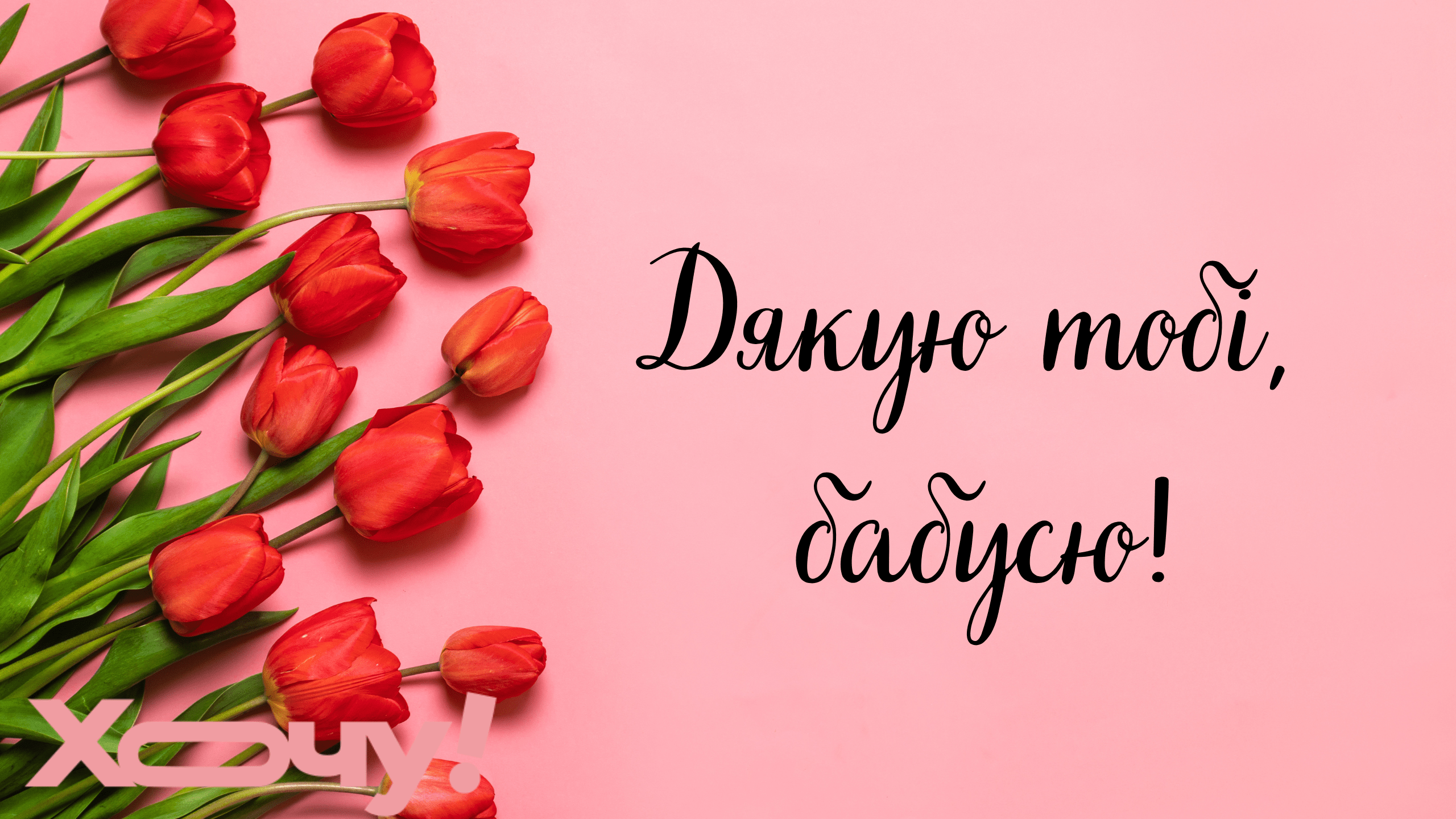 Дорога бабусю, дякую тобі за любов! З 8 Березня! Дякую тобі за твоє добре серце, за теплі обійми, за турботу, яка зігріває мене з дитинства. Ти — справжній скарб нашої родини, джерело мудрості та ніжності. Нехай кожен день дарує тобі радість, здоров’я і багато щасливих моментів!