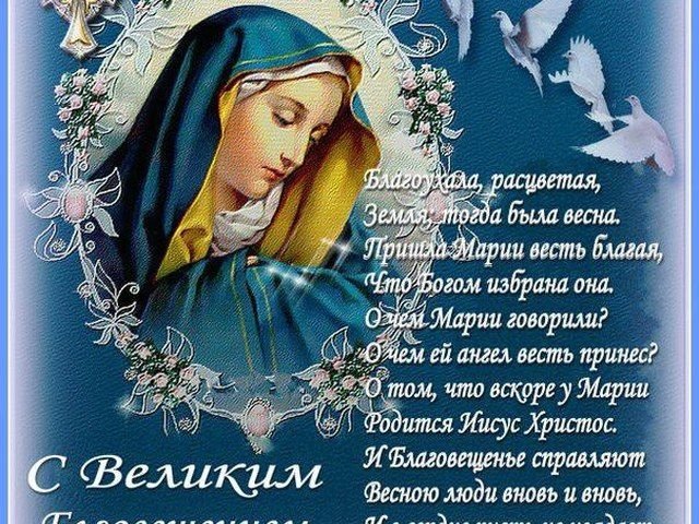 С Благовещением Пресвятой Богородицы! Пусть это светлое событие наполнит ваше сердце радостью, миром и верой в лучшее. Пусть Господь благословит вас и вашу семью, даря любовь, благополучие и здоровье.