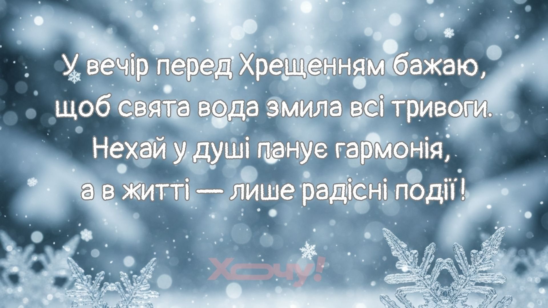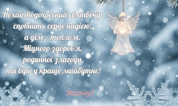 У вечір перед Хрещенням бажаю, щоб свята вода змила всі тривоги. Нехай у душі панує гармонія, а в житті — лише радісні події!