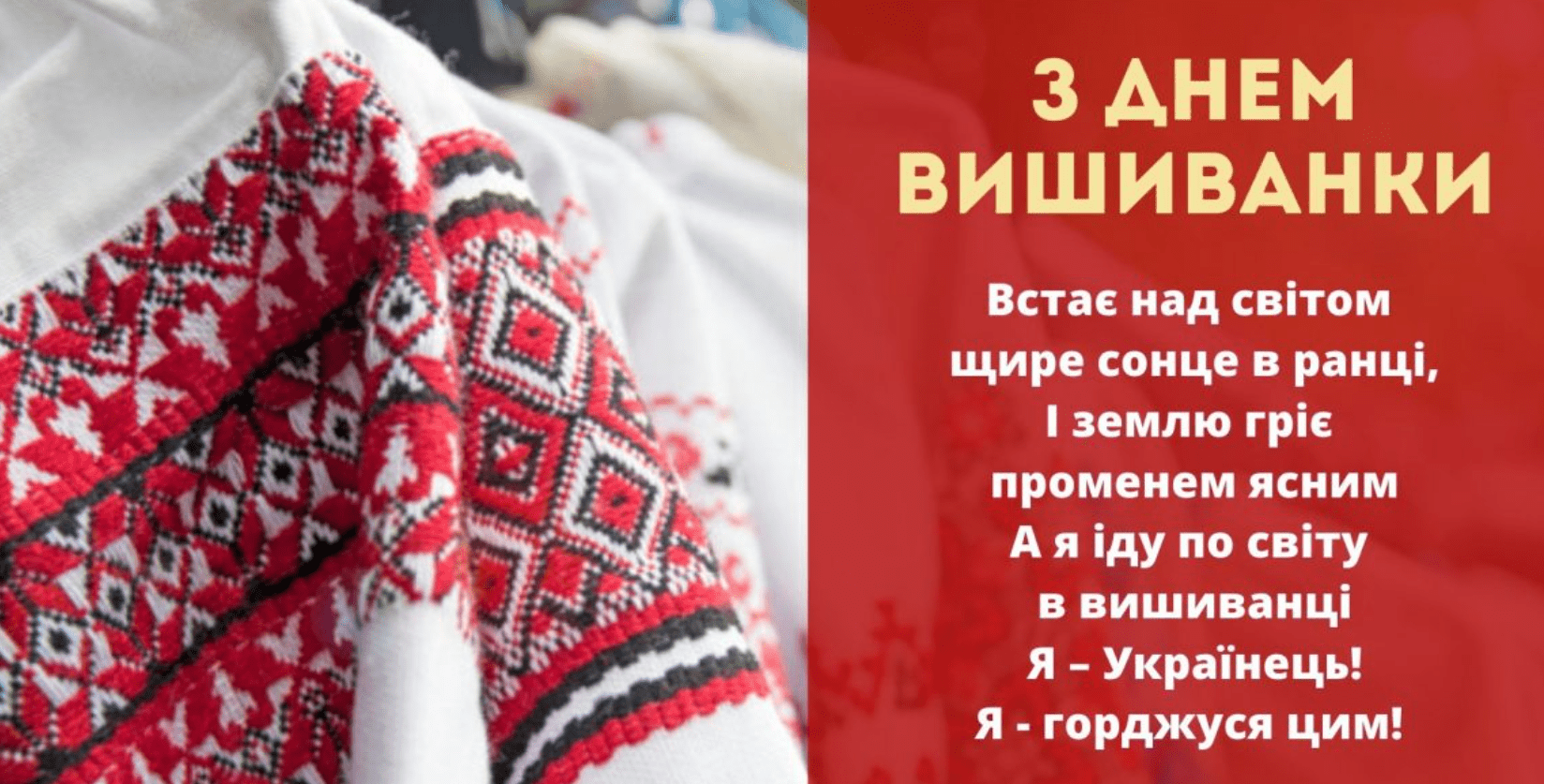 Щиро вітаю з Днем вишиванки! Нехай українська вишивка завжди буде символом миру, добра та сили нашого духу. Зберігаймо наші традиції — у серці, в словах, у вбранні.