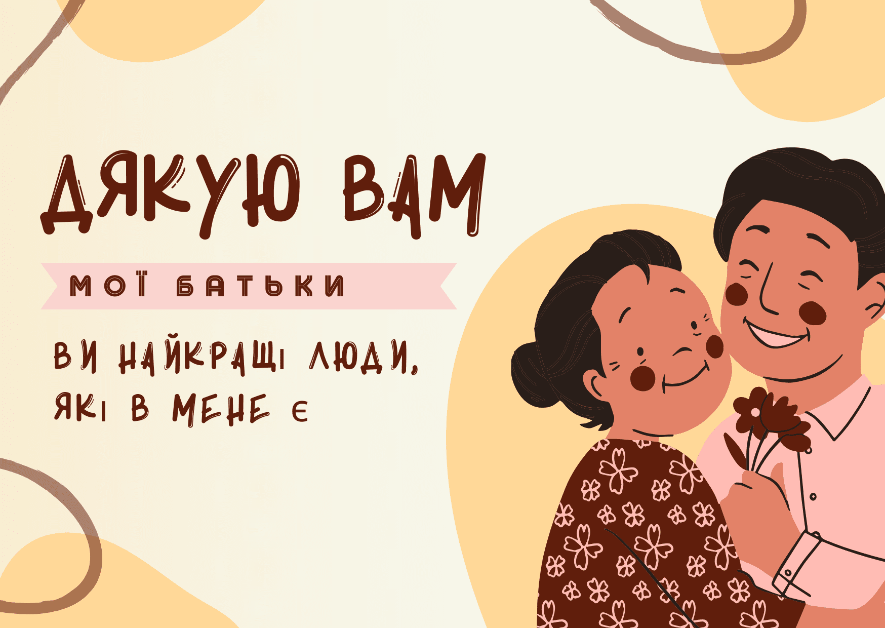 Мамо, тату, немає слів, які б передали всю мою вдячність. Просто знайте — ви найкращі. Дякую, що завжди поруч. З Днем батьків!