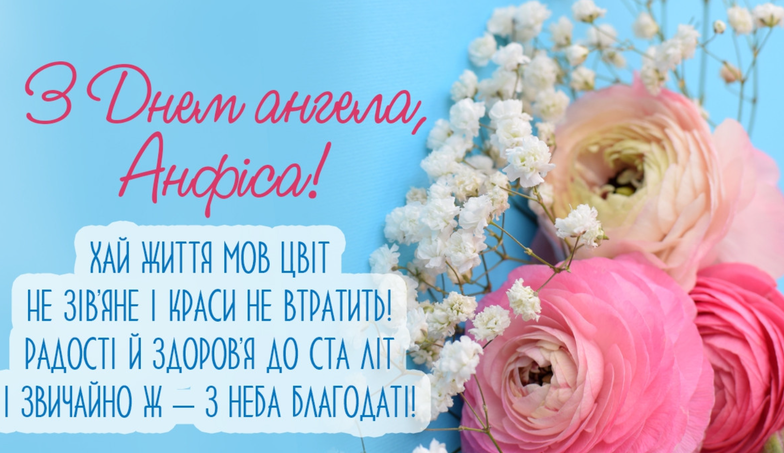 Імениннице, вітаю тебе з Днем ангела і бажаю тобі завжди з посмішкою зустрічати новий день. Нехай усі бажання виконуються, а віра в краще супроводжує тебе по життю. Нехай твій ангел-охоронець завжди буде з тобою поруч і оберігає тебе від всього поганого. З Днем ангела Анфіси!