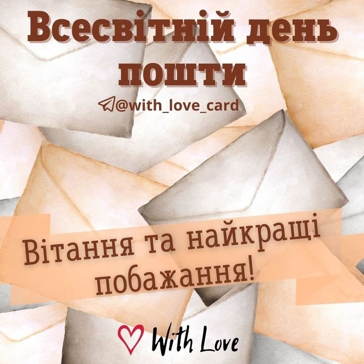 Вітаю зі Всесвітнім днем пошти! Нехай ваша праця приносить вам лише задоволення, а кожен новий день буде сповнений приємними вістями та вдячністю від клієнтів. Бажаю вам натхнення, успіхів та миру!