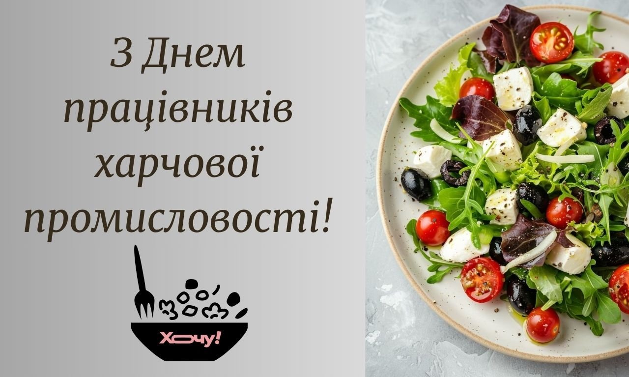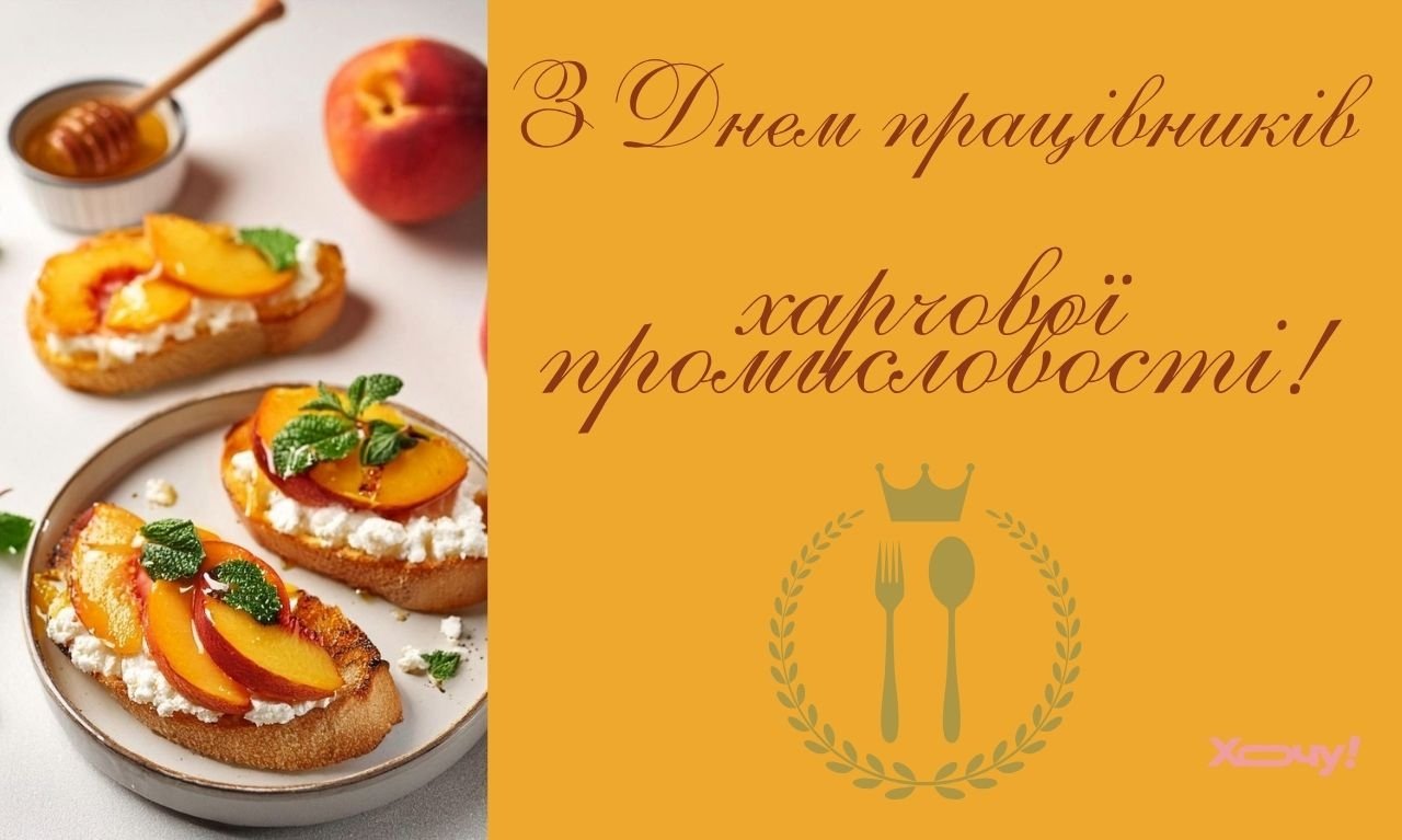 З Днем працівників харчової промисловості! Бажаємо вам міцного здоров'я, наснаги, успіхів у професійній діяльності та нових здобутків. Ваша праця є вкрай важливою для забезпечення країни якісною та смачною продукцією. Дякуємо вам за це!