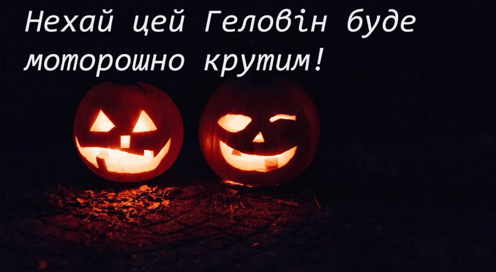 З Геловіном, ночі магії та привидів! Нехай сьогодні вам усміхається кожна відьмочка, а привиди водять лише до приємних несподіванок. Бажаю, щоб на вас чекали тільки найсолодші «страшні» пригоди, а жодне зло навіть не наважилося підступитися. Нехай геловінська ніч наповнить вас відчуттям свята, яскравими емоціями та нестримними веселощами!