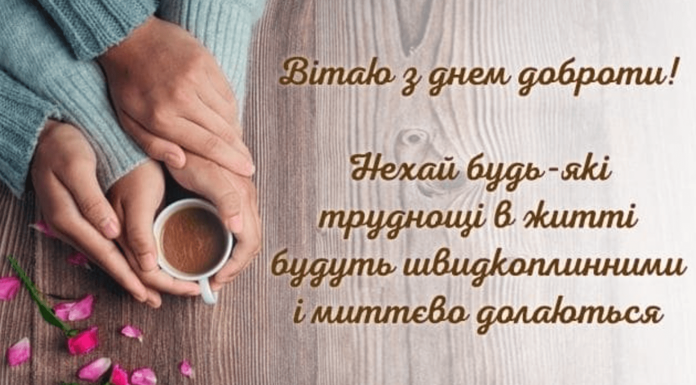 Всім людям потрібна доброта і нехай більше трапляється добрих справ! Бажаю щирих проявів хороших якостей та вчинків, бути уважними до інших та не соромитися виявити турботу! З Міжнародним днем доброти!