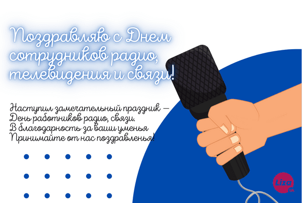 Поздравляем с Днем работников радио, телевидения и связи! Желаем радостных новостей, замечательных идей, бравой работы, успешной деятельности, веселых сюжетов, полезной информации, интересных занятий и большого счастья на жизненном пути.