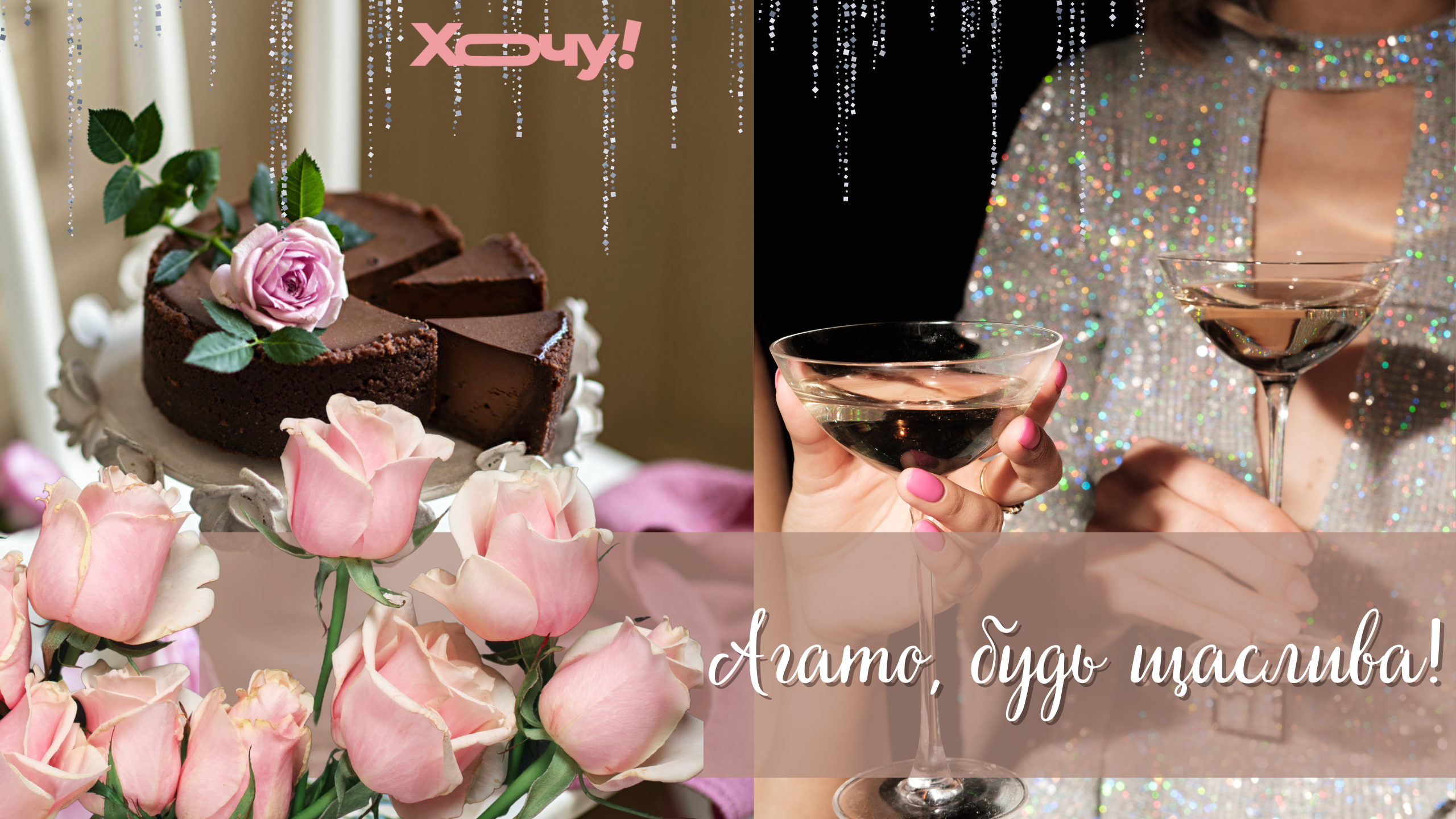 Моя дорога Агато, хочу побажати тобі сьогодні не зупинятися і сміливо йти до своїх цілей. Нехай у тебе завжди буде багато хороших, терплячих друзів, грошей та здоров’я. Бажаю залишатися такою ж незвичайною, чуйною та красивою.