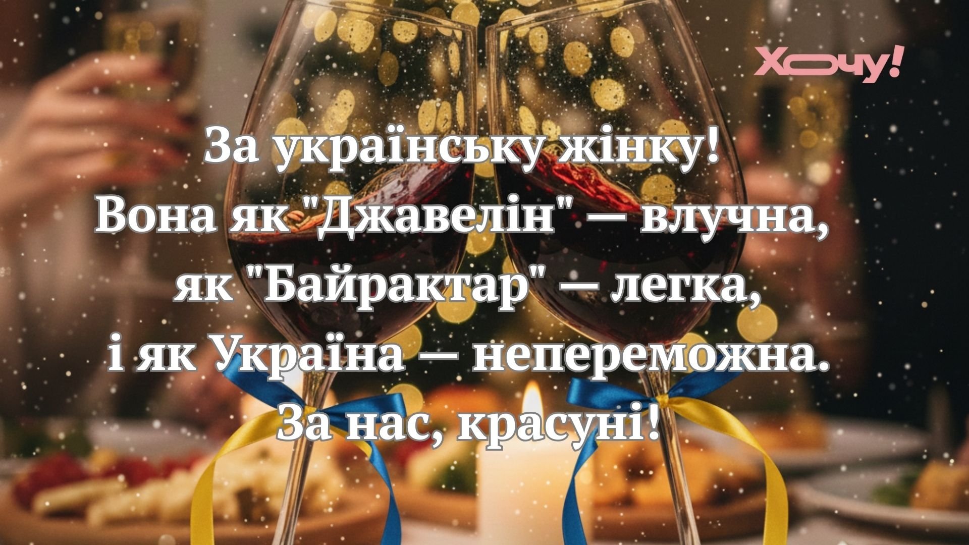 За украинскую женщину! Она как "Джавелин" — меткая, как "Байрактар" — легкая, и как Украина — непобедима. За нас, красотки!