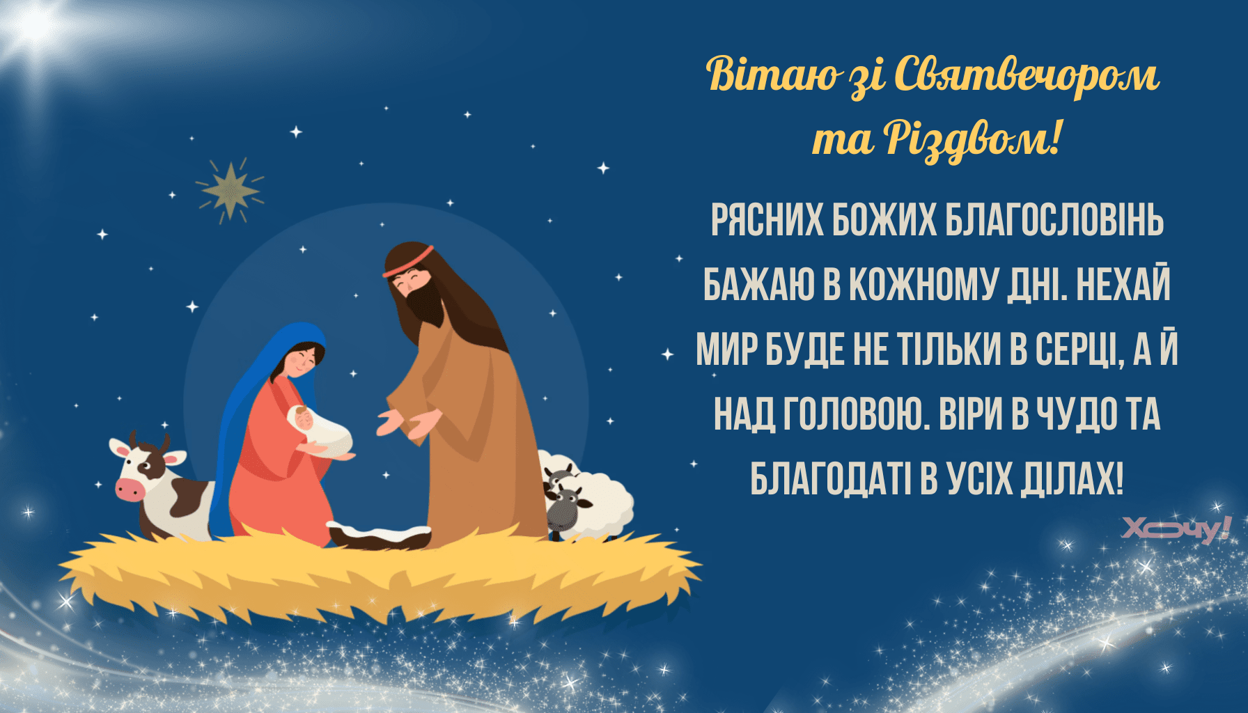 В этой статье ХОЧУ.ua собрал для вас красивые поздравления со Святым вечером и Рождеством Христовым, которые можно отправить своим родным, близким, друзьям и коллегам в соцсетях. Праздничные открытки на украинском языке вы найдете далее в нашем материале. Сохраняйте себе лучшие и делитесь радостной новостью с теми, кого любите! ❤️🔥